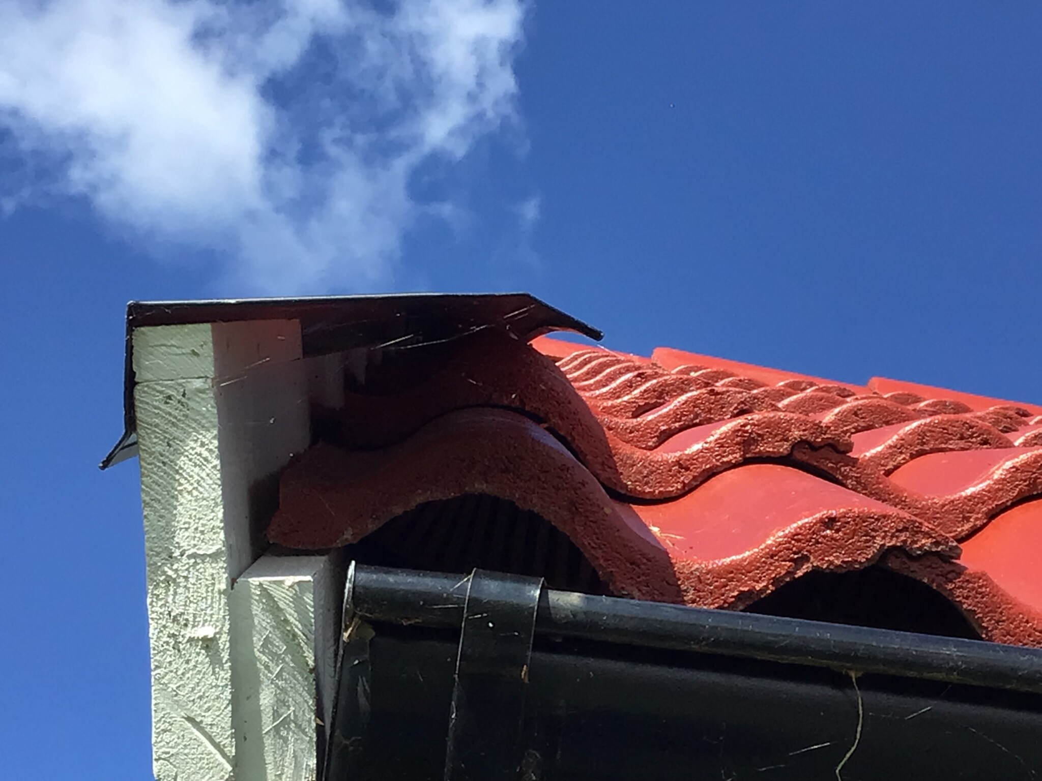 Han skulle riva gammalt tegel. Spänna duk över spåntaket, regla och lägga nytt betongtegel samt sätta plåt mellan mig och grannens tak. Allt skulle vara vattentätt och framför allt inte riskera att läcka in på grannens del. Jag tog upp med honom, för han var på semester när hans personal gjorde jobbet. Den första killen som la plåten erkände att han var takläggare, inte plåtslagare. Men han skickade en ny kille som sa att han var plåtslagare. Det var han som gjorde det sista arbetet. Den killen sa att nu var de färdiga med mig och att det inte kunde bli bättre. Jag kontaktade killen under hans semester och han lovade att kolla över det hela när han kom hem. Väl på plats tyckte han först att det var ok men lovade att fixa nya plåtar och rätta till så att vindskivorna satt rätt. Han drog in dessa men fixade inte fuskbitarna. Det mot grannen tittade han inte ens på. Jag har dokumenterat och skrivit e-post och textat med honom, samt tagit kort. Nu är vi sams. Nu vill han ta in en oberoende inspektör men jag får betala säger han.