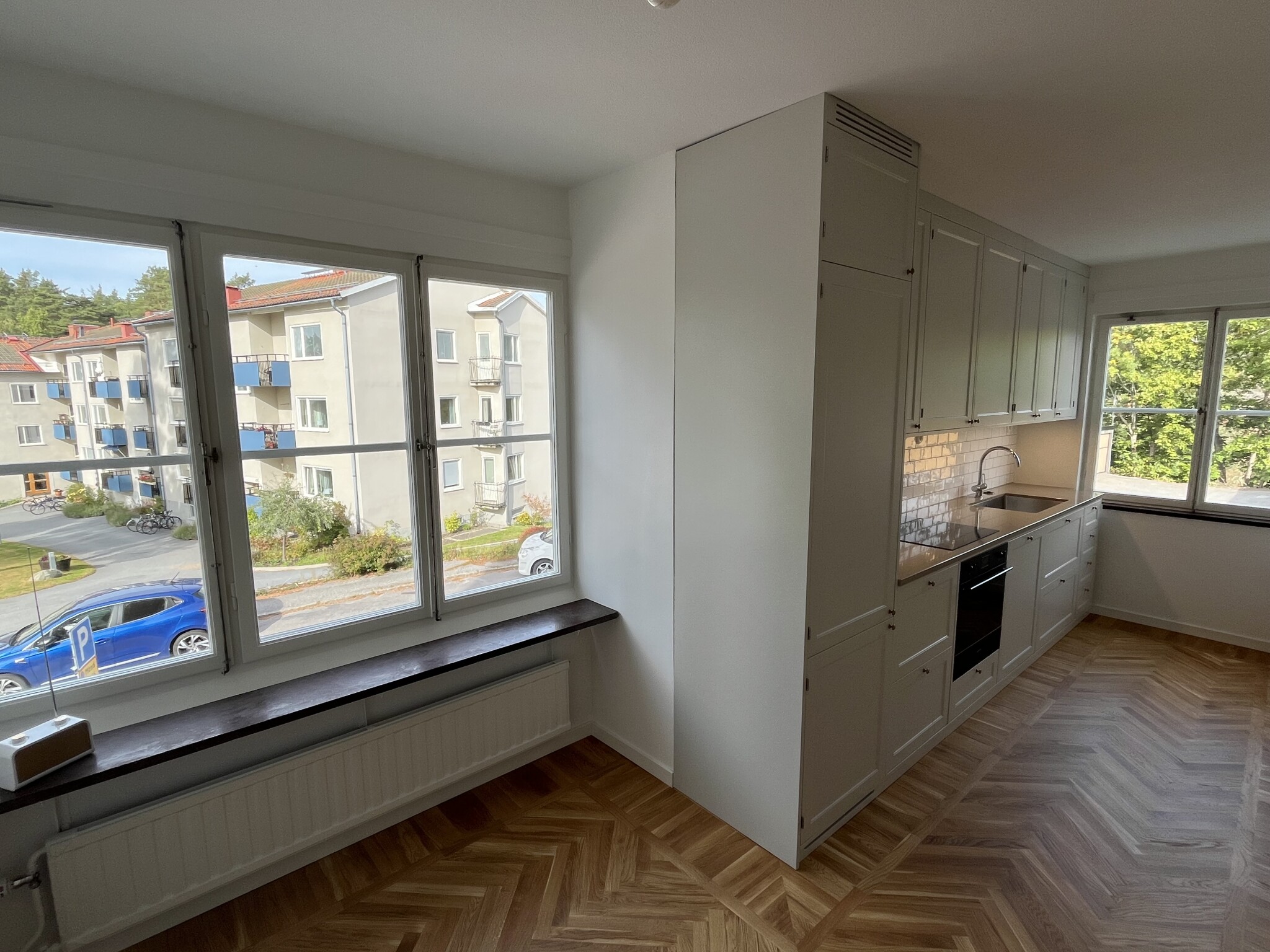 Aha, jag fattar, vi hade två jätteduktiga parkettläggare från Småland uppe en vecka. Dom la in nytt i köket och i dom två rum som inte hade det. Sedan slipade o vaxade dom samtliga golv, även dom befintliga som låg i vardagsrummet o hallen. Man ser idag ingen skillnad mellan dom som är nya och dom gamla som är från 50-talet, vi blev jättenöjda. Jag kan PM:a dig detaljer o kontakter om du vill?D Derbyboy skrev: