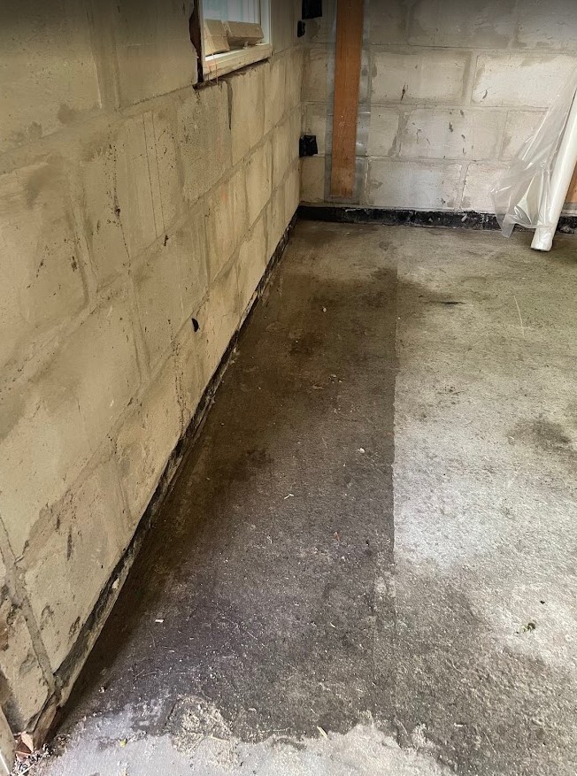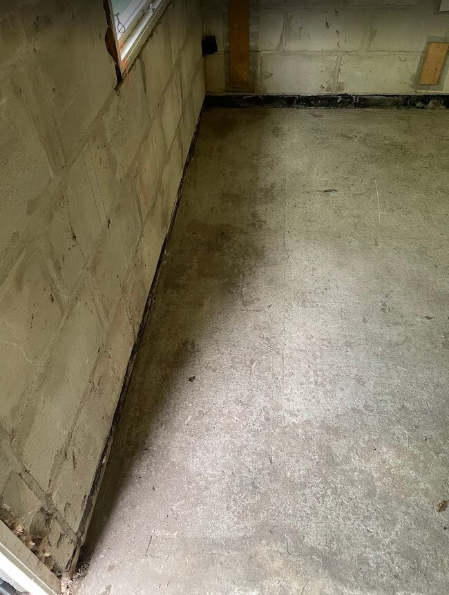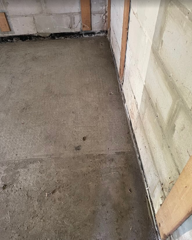 Men nu är jag lite orolig för om det kommer in fukt underfrån plattan. Bilderna visar hur det såg ut när vi hade rivit ut golvet och exponerade betongen. Sen är det bilder som visar hur det förvisso har torkat upp, men jag är ändå kluven om jag vågar lägga golv redan nu eller om jag behöver göra något mer.