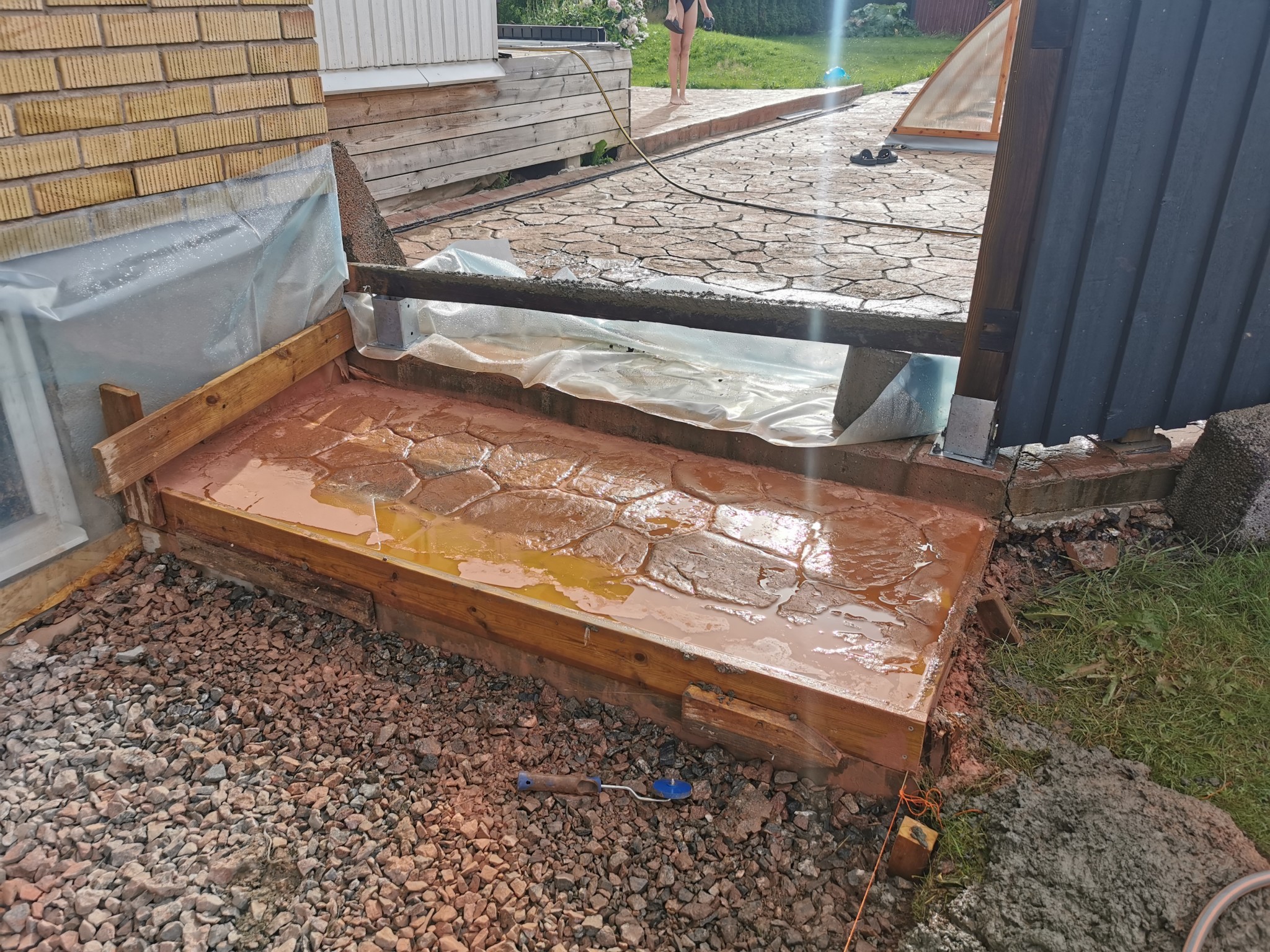 Betongen är lite ytfärgad med "stain" o släppulver.