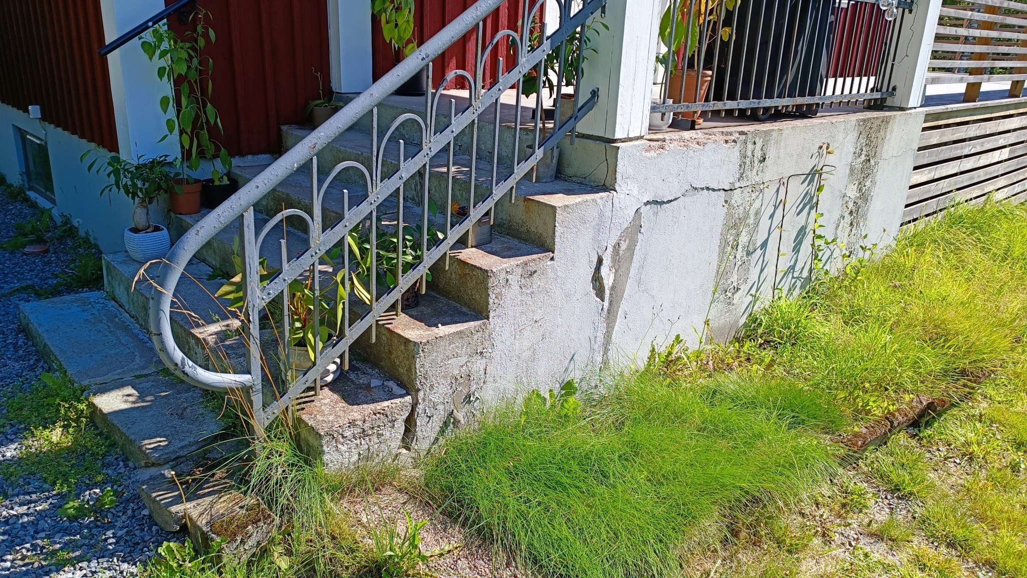 Som rubriken lyder så har vi en betongtrappa som inte är i så bra skick. Vi nyligen huset, och denna trappan är egentligen det enda "stora" som behöver åtgärdas.