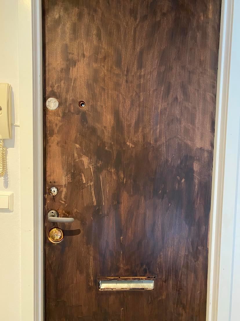 ! På bilden är det en stark lampa som riktats mot dörren så det ser värre ut på bilden är i "verkligheten".
