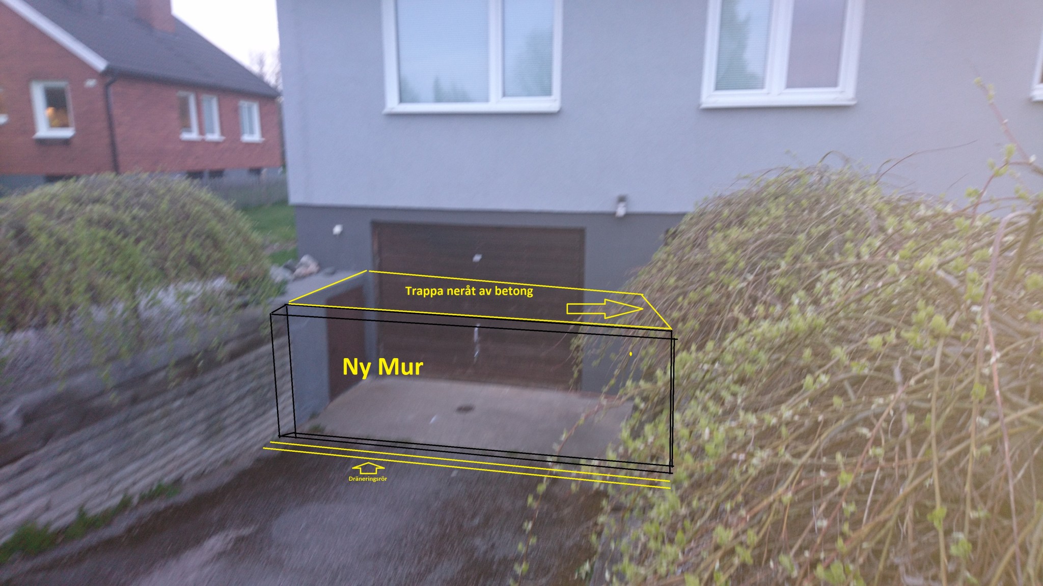 För att rätta till det så vill hantverkaren bila upp en del av rummet o bara ha en klack på 10 cm upp där rummet börjar och 10 cm ner där det slutar. Där kommer han sätta upp porddränskivor.