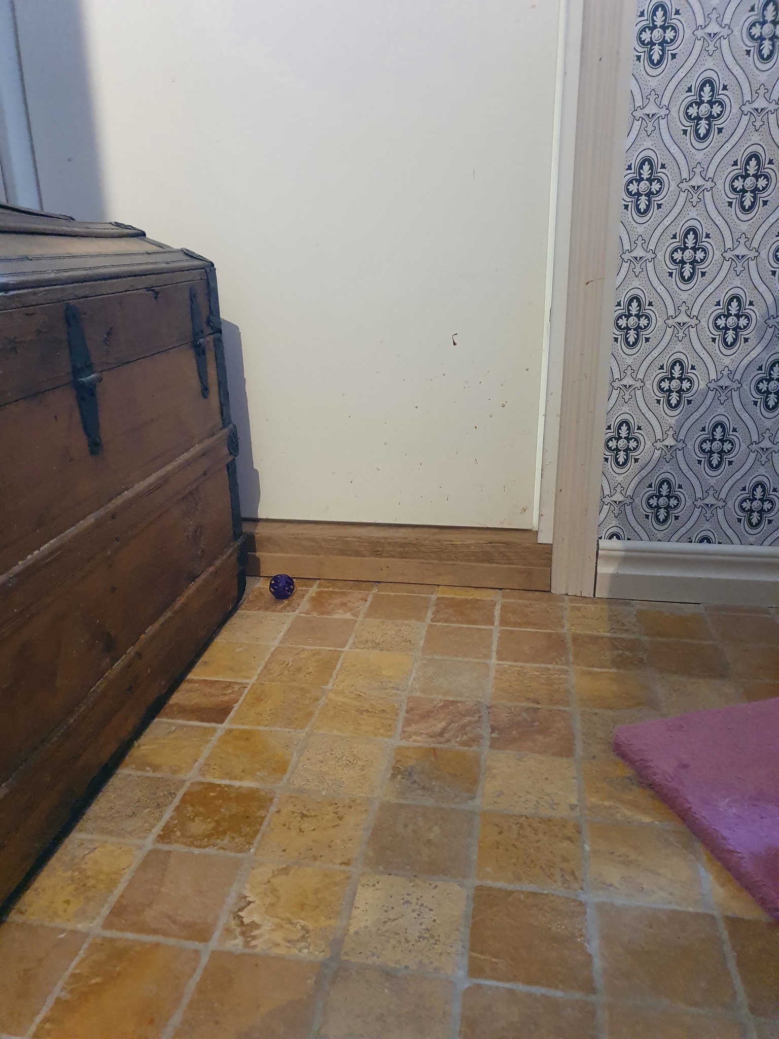 Det är en väldigt hög tröskel på insidan ut på den gamla trappan. Helst en ny dörr med ingen tröskel och en fin trappa är ju målet. Men kände att allt blev lite mer avancerat nu när jag ser under huset.