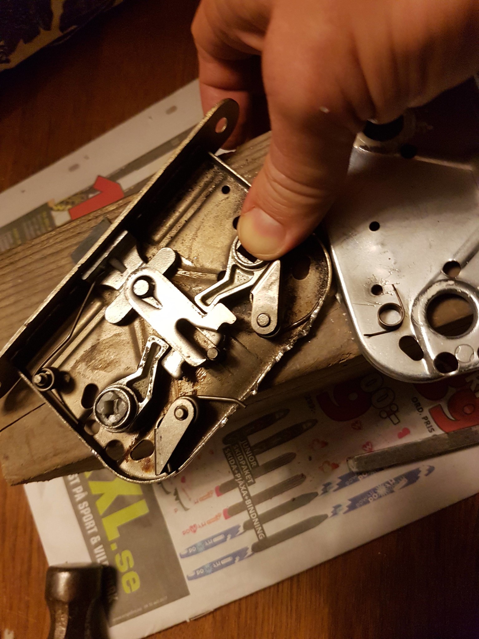 Det finns inga nya reservdelar till dessa lås och de är nitade för att man inte ska öppna dem.