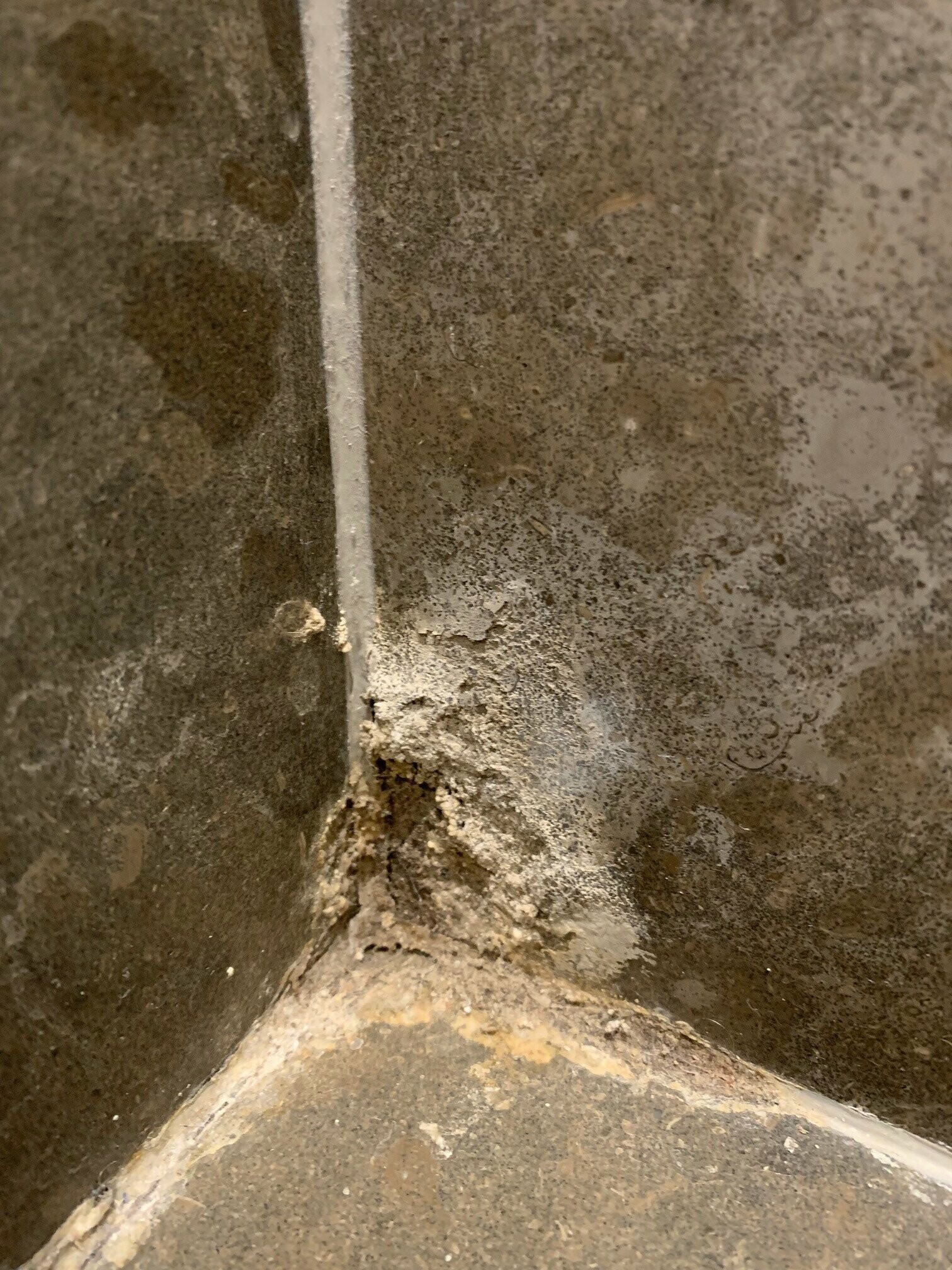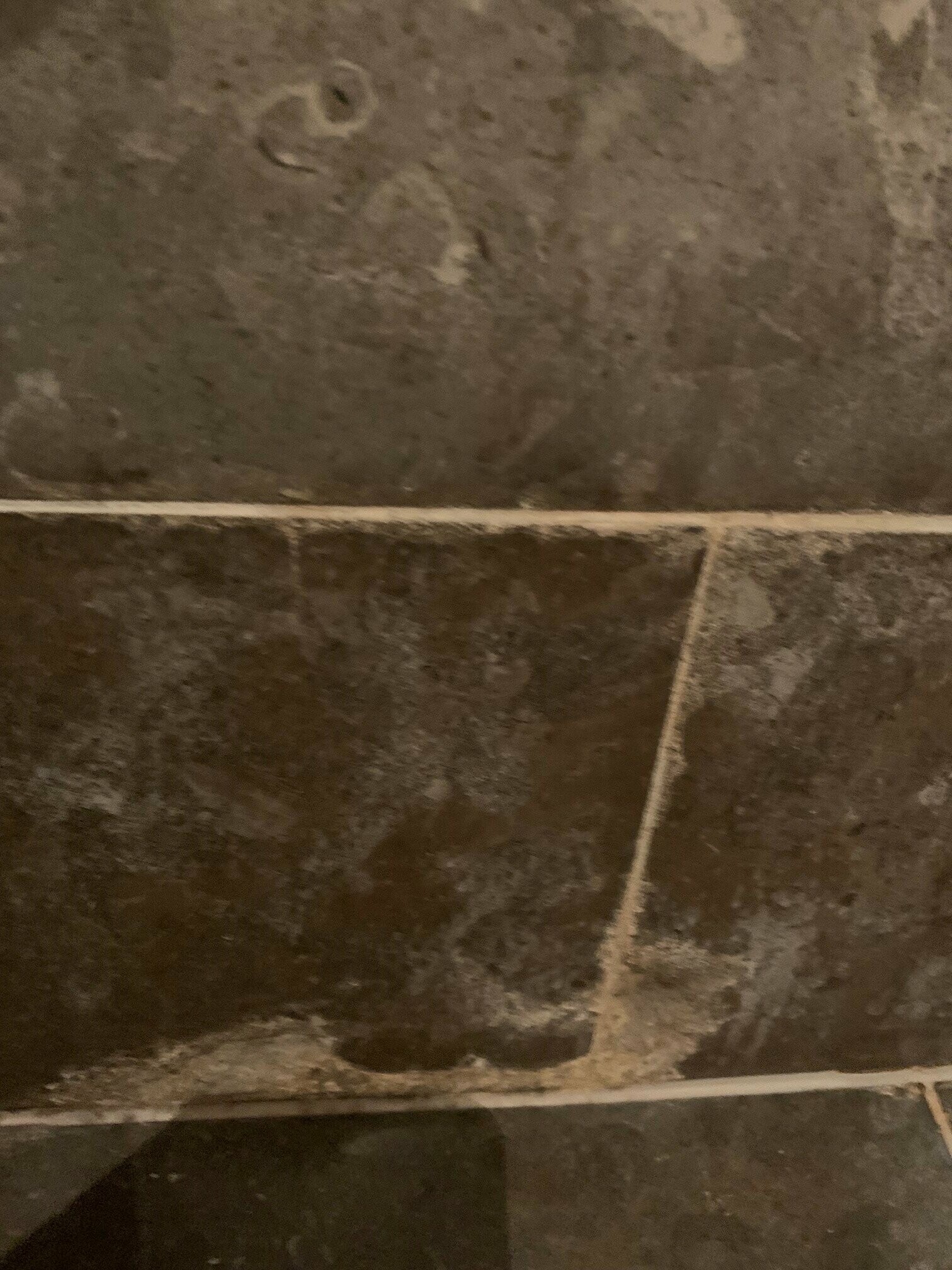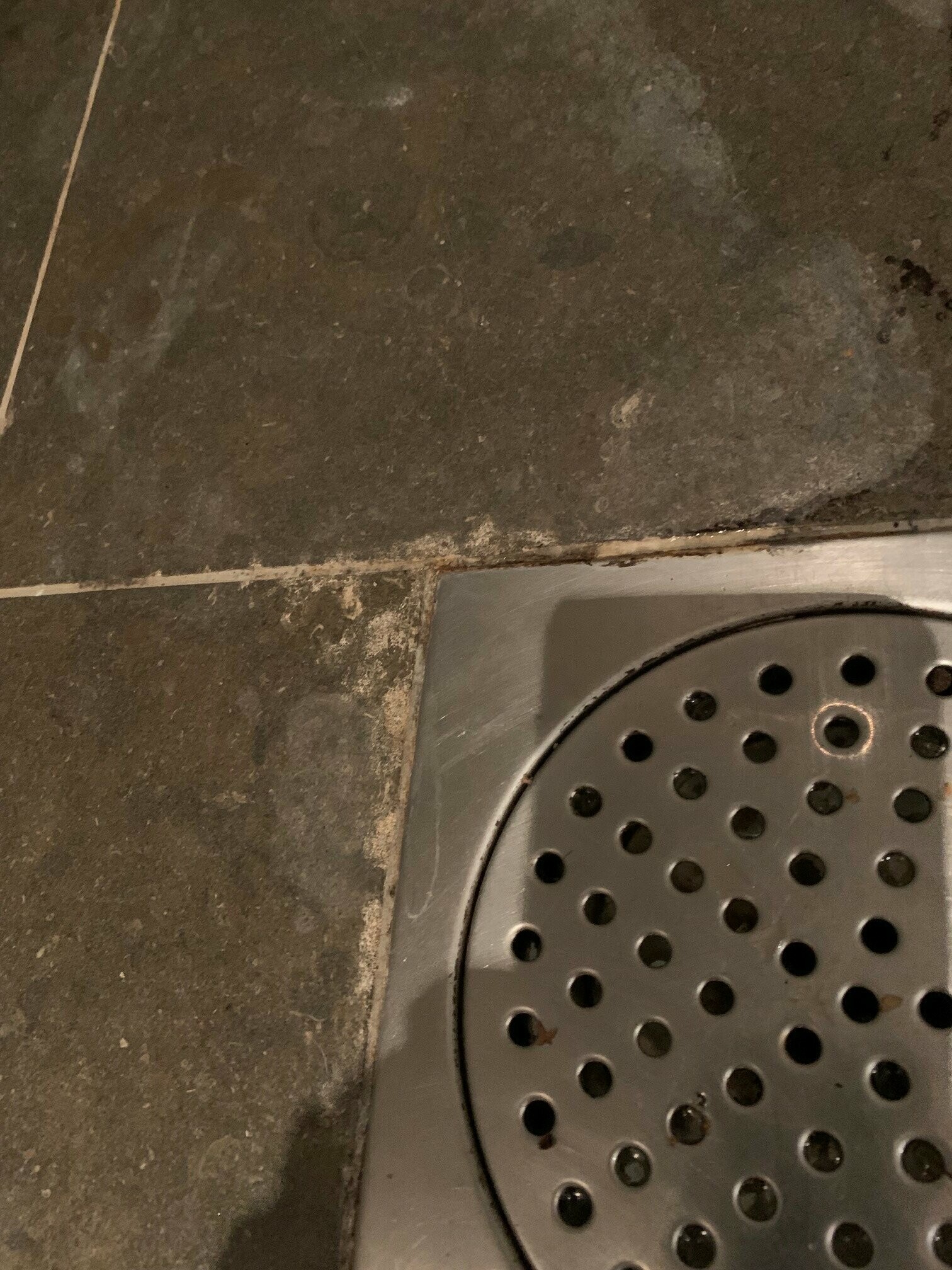 Vi har haft badrummet i 15 år och de första åren helt utan problem, men nu har väl någon familjemedlem eller kanske hunden bytt schampo och då uppstår kraftiga skador. Till saken hör att vi har golvvärme (ganska varmt) i badrummet.