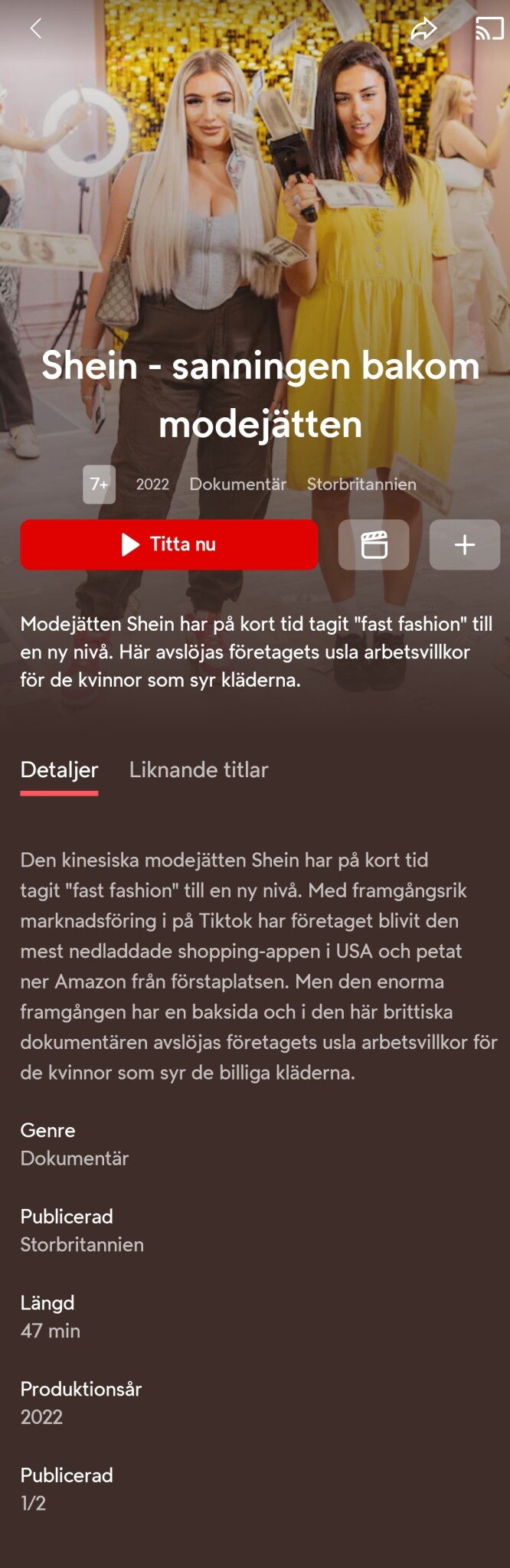 TV4 Play: Shein - sanningen bakom modejätten https://www.tv4play.se/program/463889f1a3058b08bfbb