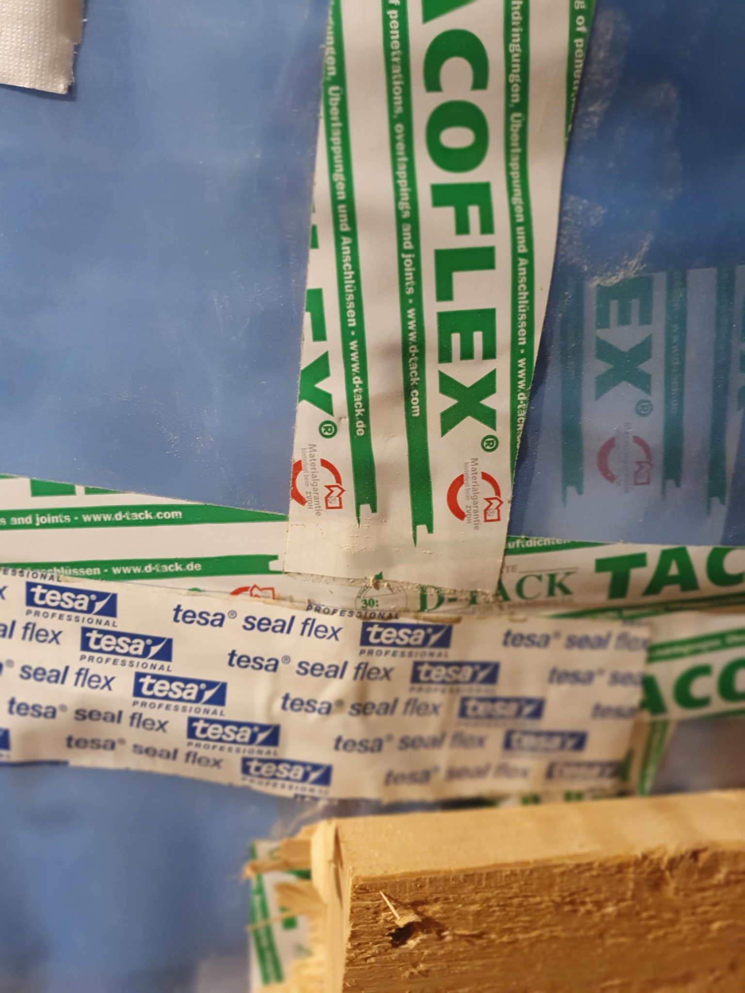 Kostar man på med åldersbeständig plast ska man väl inte snåla på tejpen. Dålig tejp släpper med tiden och då har man ingen ångspärr längre.