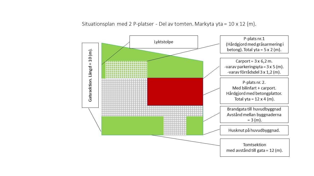 Varför ytan bredvid? Du har ju carporten och uppfarten framför. Det blir två platser.