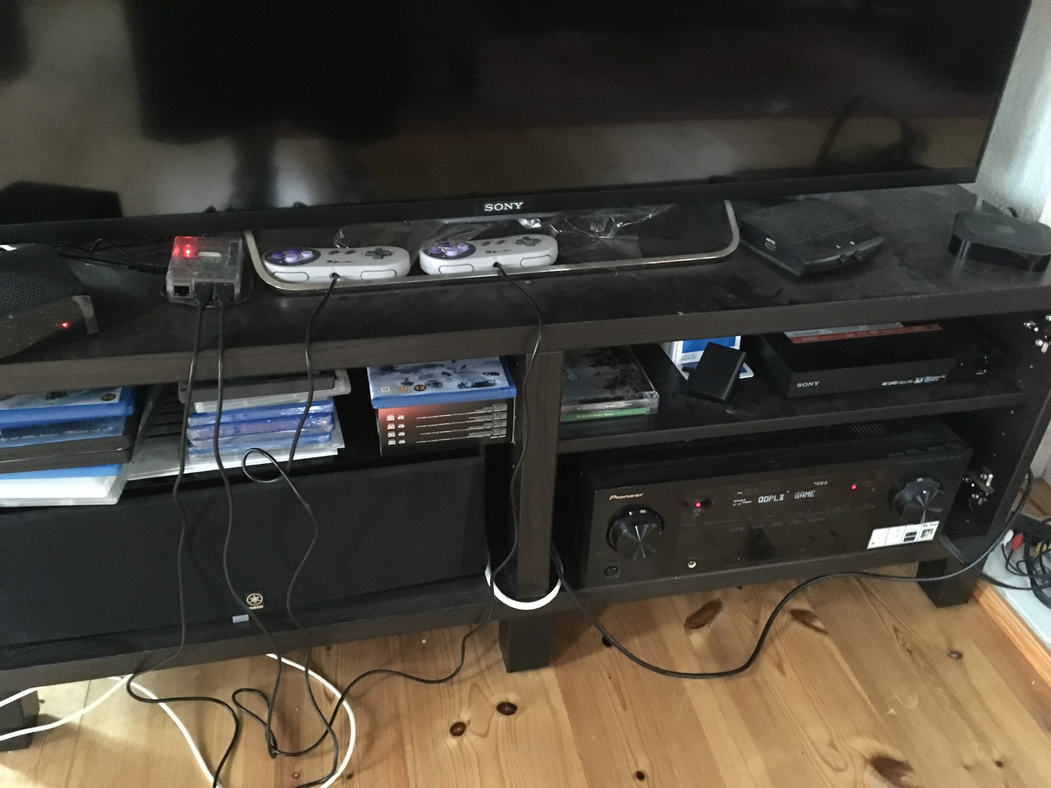 Inte alltid lätt att blanda in sådan modern teknik i ett 1800-talshus.. (som du ser på bilden med duken, så är vår fina kakelugn lite i kläm..).