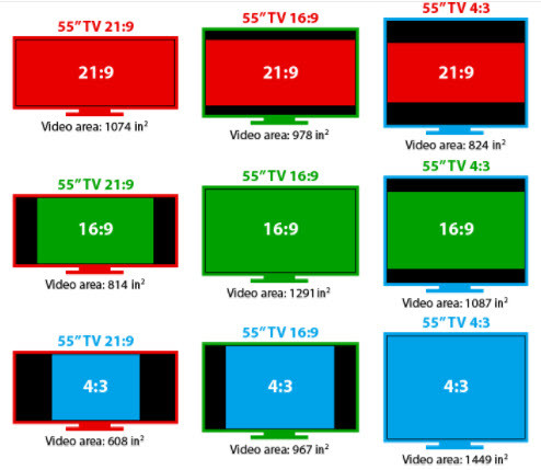 Tänk på TV serier etc. som mestadels är i 16:9. Se nedan bild för lite förhållanden.