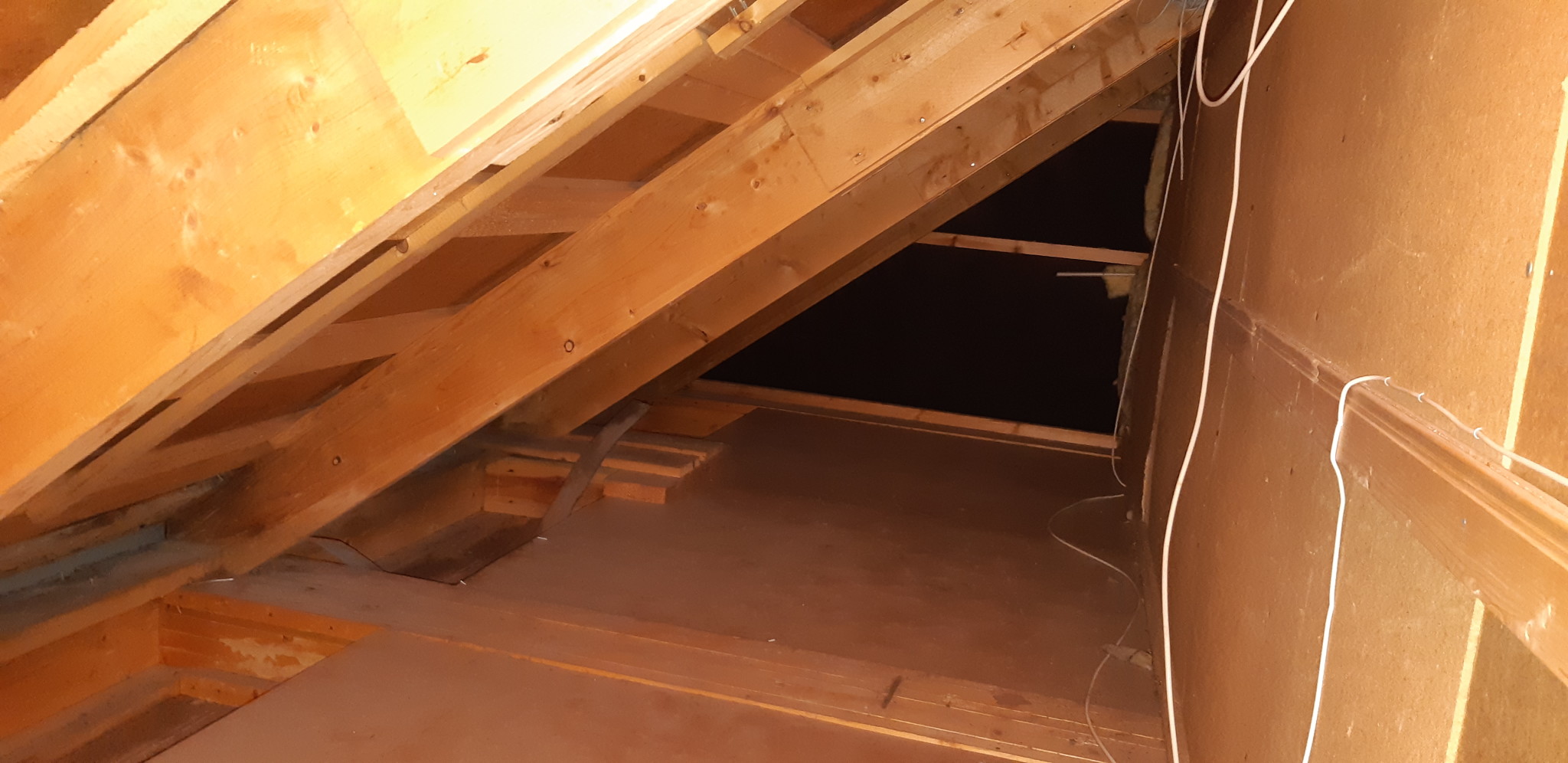 Lyfter vi på en skiva på sidovindan ser man att bjälklag (eventuellt för klent för att vara bjälklaget?) går tvärs emot vad vi trodde, alltså längs med långsidan/ nocken och inte i kors över.