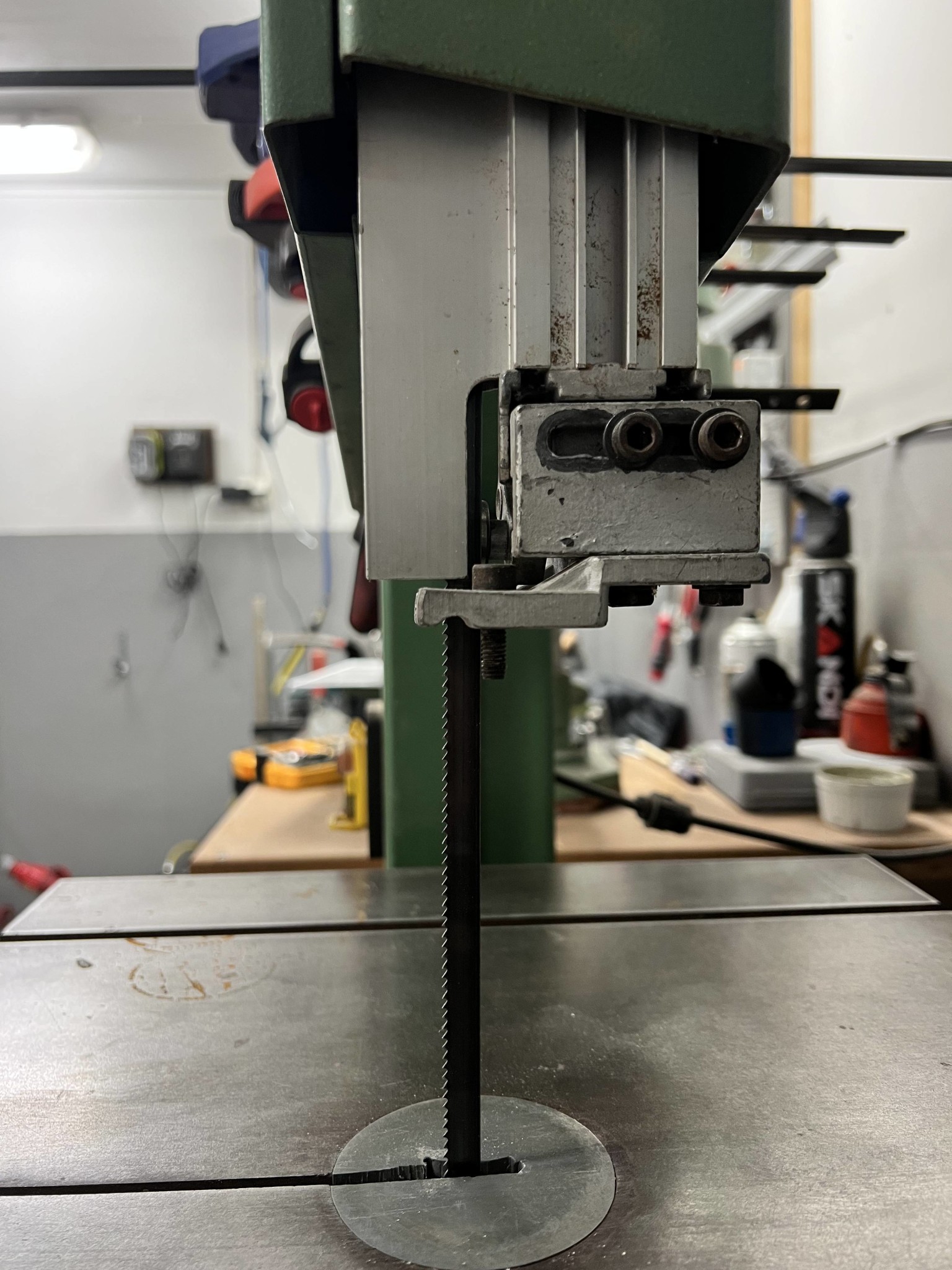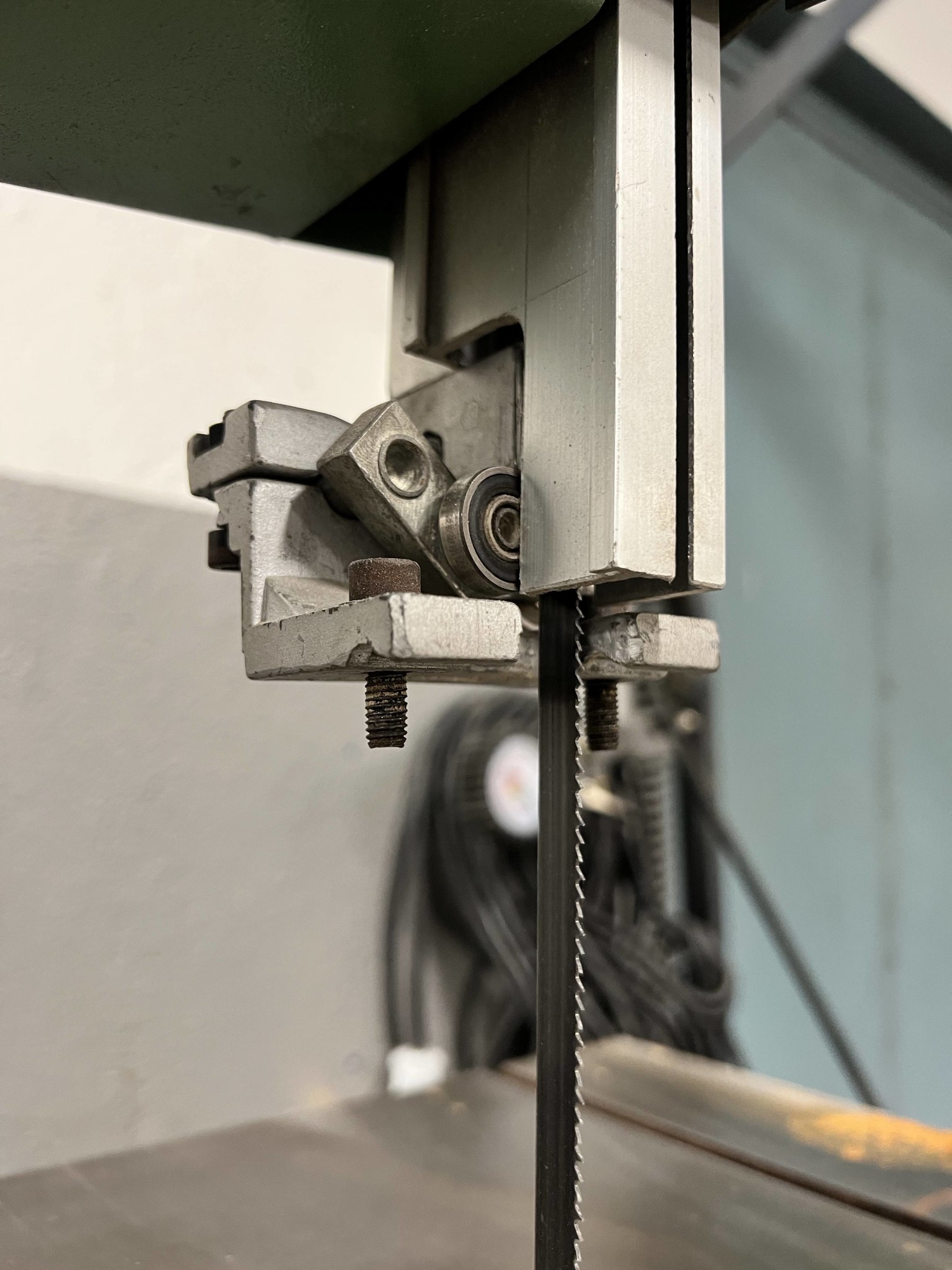 Jag behöver en ny bladstyrning till bandsågen på bild men det finns inget att gå på då ja inte känner till vilket märke bandsågen är.