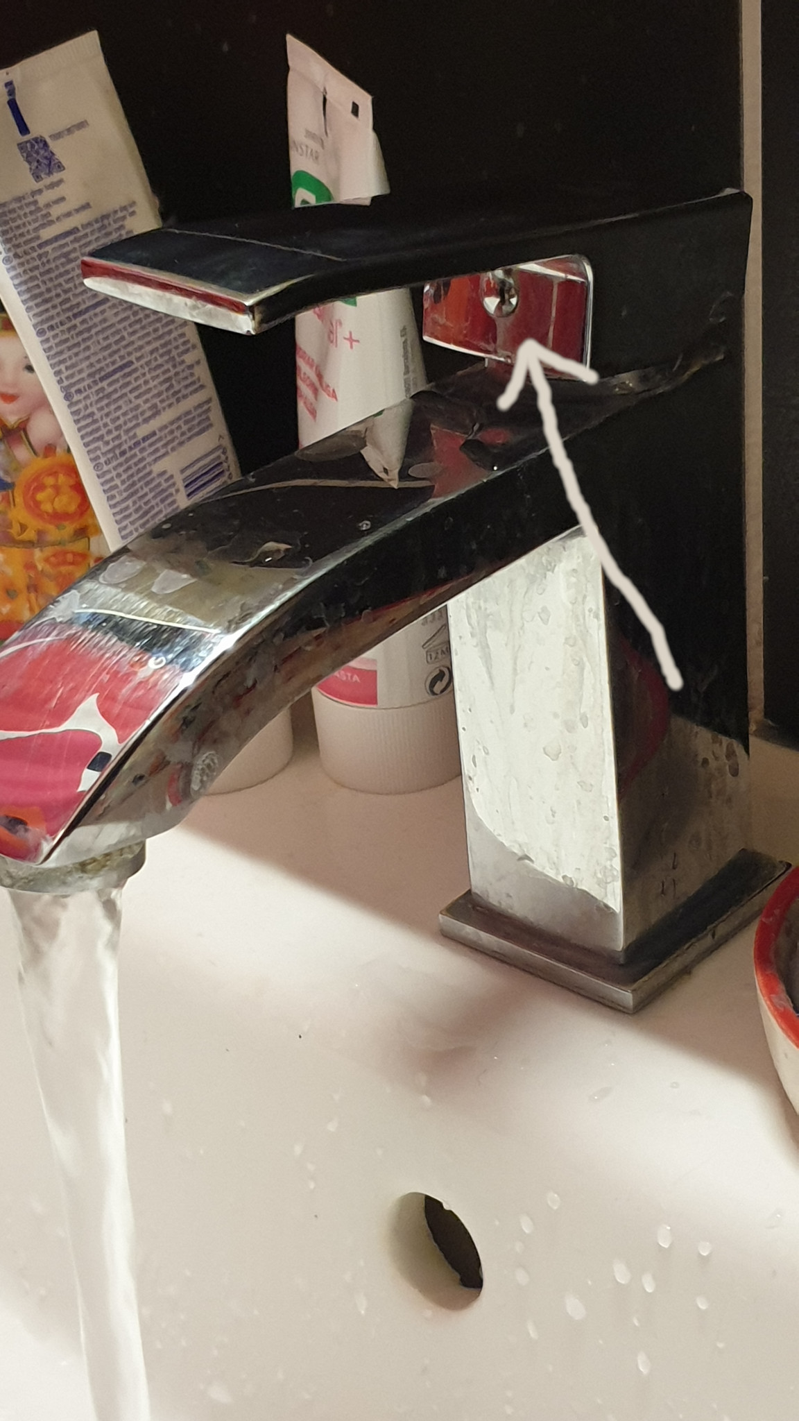 Någon som vet fabrikat och om det går att åtgärda? Funderade på om det är något som går att dra åt bakom "ploppen" som pilen pekar på. Jag kan stänga av kallvatten men inte varmvatten. Bor i bostadsrätt.