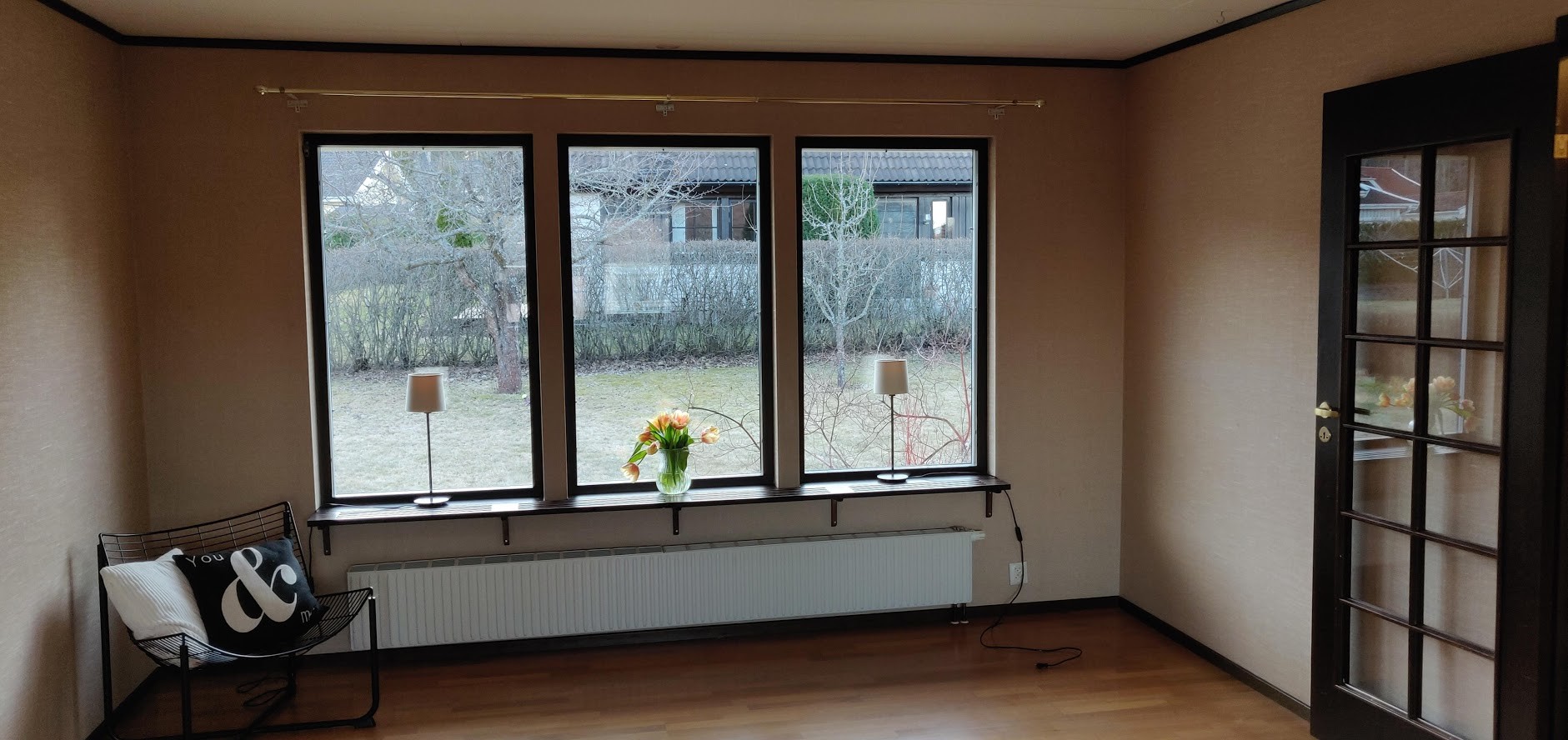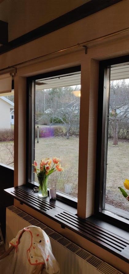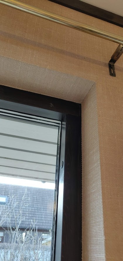 Till en början var vi helt inställda med att ta in hantverkare för att bredspackla. och sedan måla eller tapetsera på det. Men nu när vi flyttat in och jag har kunnat undersöka kvalitén på tapeterna närmare funderar jag på om jag inte istället skulle sätta upp renoveringstapet själv och sedan måla eller tapetsera på det. Förutom den ekonomiska aspekten ser jag även fördelar med att jag enklare kan göra rum för rum, samt att vi slipper allt slipdam som inte är så trevligt då vi samtidigt bor i huset. Det enda jag egentligen oroar mig för med denna lösning är hur jag gör runt alla fönster där de valt att tapetsera enda in runt hörn etc. Jag bifogar bilder som förklarar lite hur det ser ut.