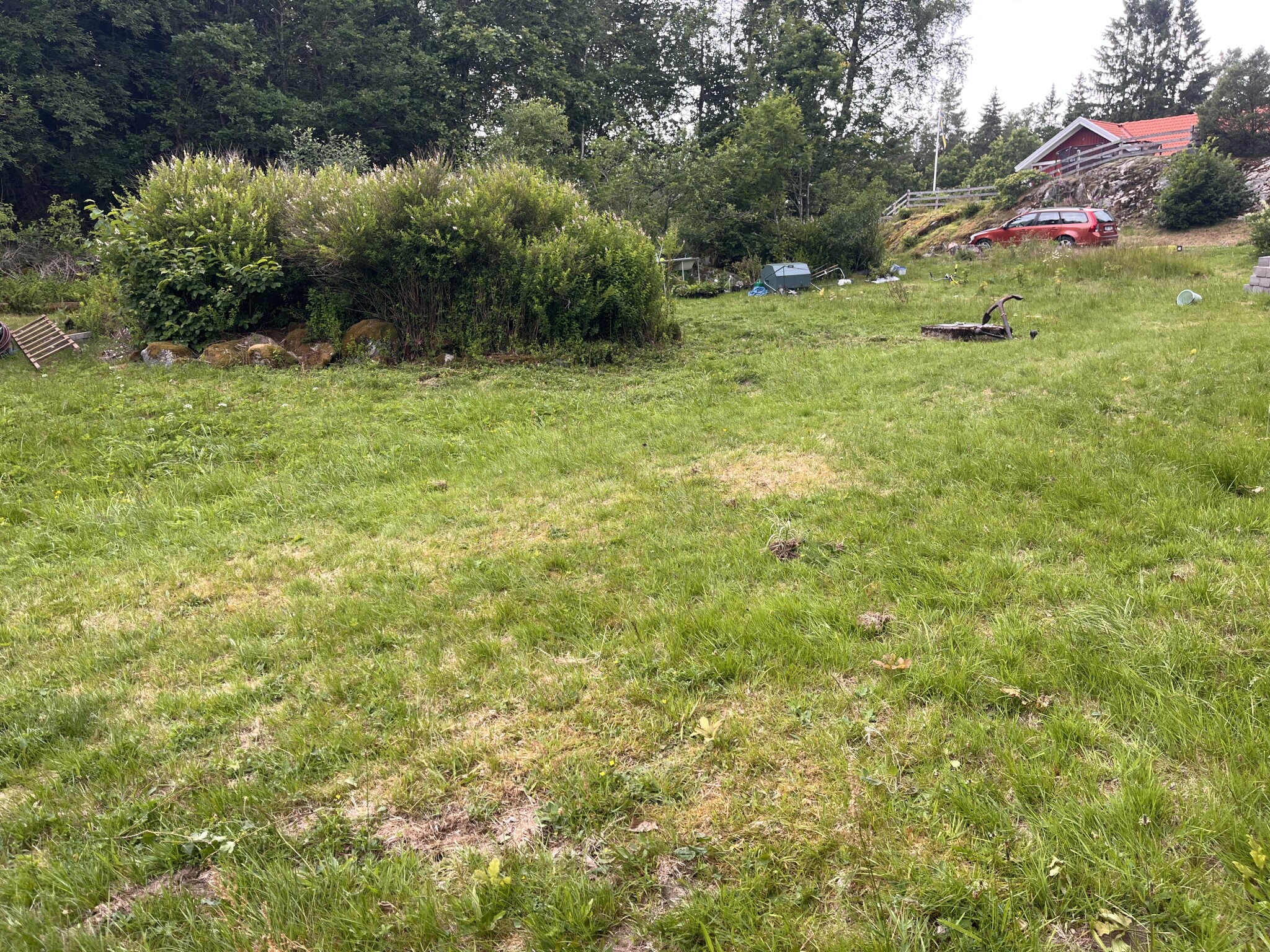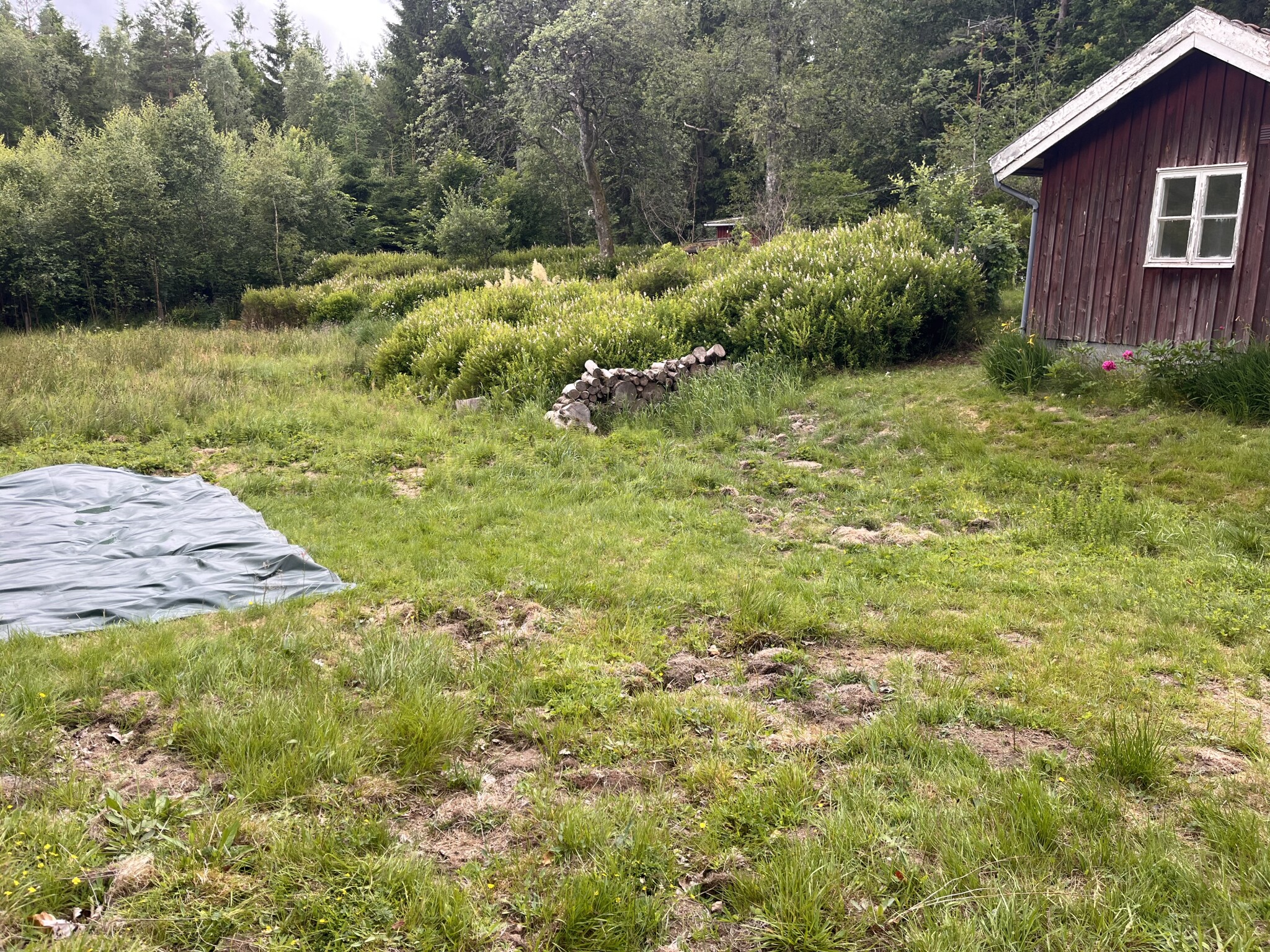 Så det är tre delar som jag vill lösa i samma omgång. Ordna avlopp, höja upp tomten så den blir torrare och jämna ut marken så att den bli användbar. Den är i dagsläget rätt ojämn efter vildsvin och att ha fått växa vilt i ett tiotal år. Det är rätt svårt att gå på med gräsklippare nu, den är väldigt gropig, har bara testat med röjsåg. Jag skulle vilja ha möjlighet att i slutändan sätta en robot på att hålla efter ytorna.