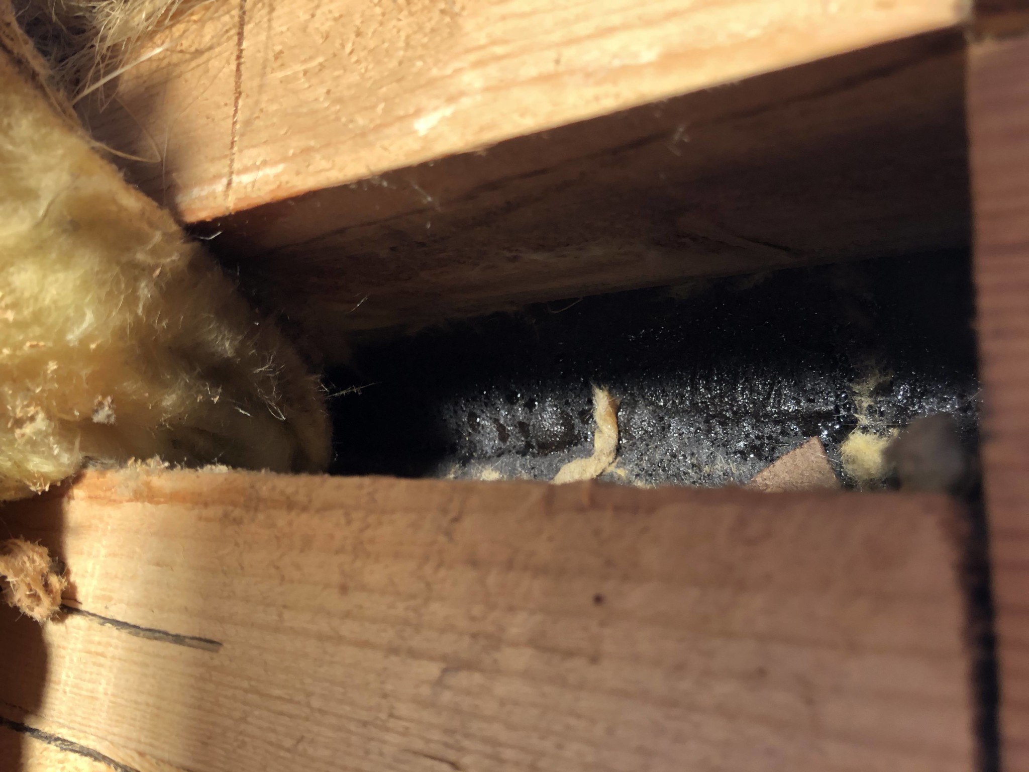 Tittar man på virket ut mot ytterväggen så ser man att det inte finns ngn som helst antydan till fuktproblem. Det här är alltså ett helt nytt fenomen. Som uppstår om man river invändigt fuktskydd under vinterhalvåret.