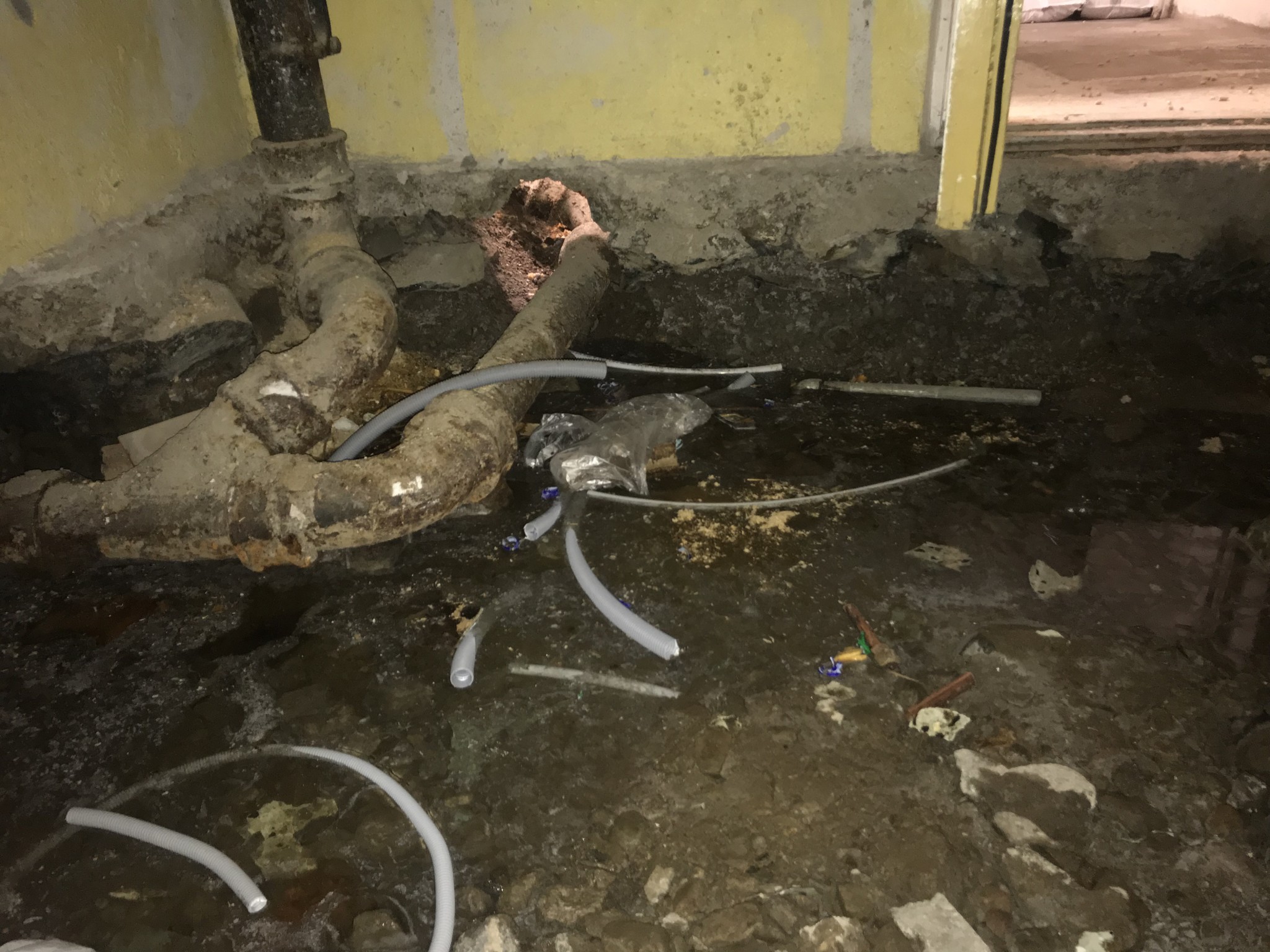 Mäter jag där rören sitter så har jag 1,6m. Det vatten som dräneringen inte hinner med kanske är det som jag får fram när jag gräver? Va in i nästa rum där jag bilat ur hela golvet. Samma nivå på marken där. Och vatten...
