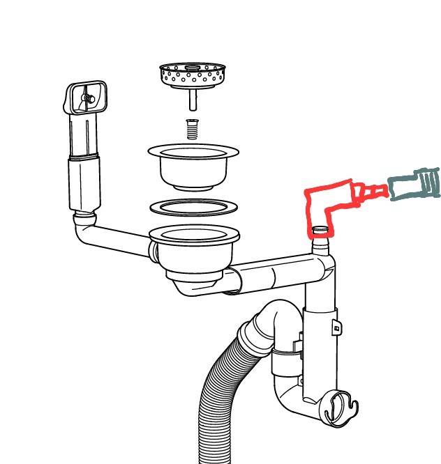 Problemet nu är att inkopplingen till nya vattenlåset är rakt upp istället för vinklat åt sidan typ 45 grader som mitt förra vattenlås