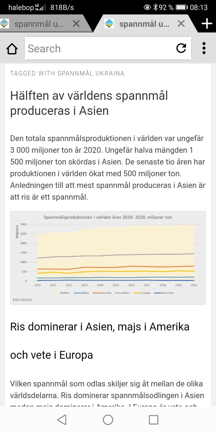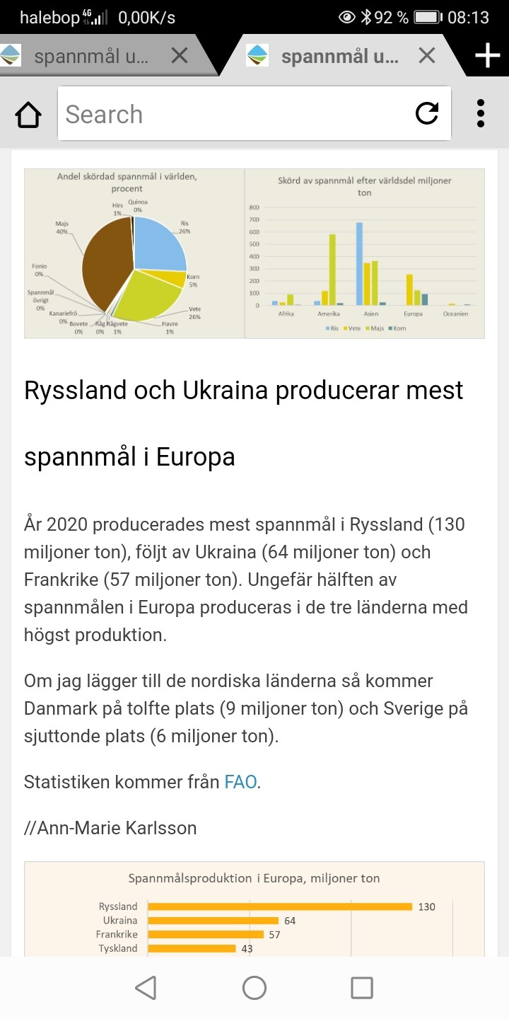 spannmål ukraina | Jordbruket i siffrorP pmd skrev:Nej, det kan inte stämma eftersom hälften av allt spannmål i världen produceras i Asien. Världsproduktionen var 3 000 miljoner ton år 2020.