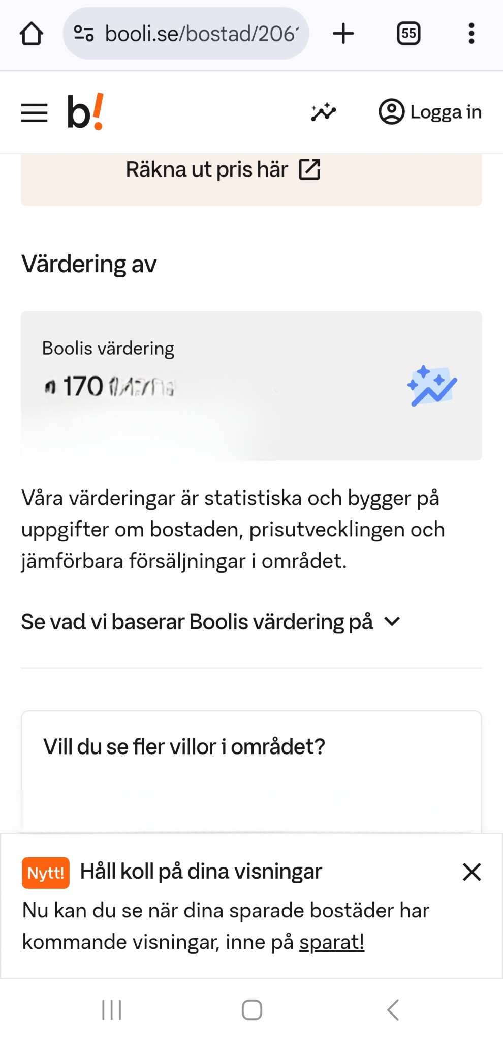 Har du gjort en värdering av din bostad i Booli? Det är en hel del parametrar som ska fyllas i.Q Qjanto skrev:Tittar också på booli men fortfarande mer på hemnet. Booli är bra på nycket, men är som allt annat katastrofal vid värdering av bostad. Tar endast hänsyn till vad objektet sålts för tidigare, eller vad grannar har sålt för och gör kalkyl utifrån detta, vilket blir fel, för det tas inte hänsyn till investeringar eller renoveringar som gjorts. Två likadana villor bredvid varandra, kan få samma värdering trots att den ena är renoverings objekt fr. 90-talet och den andra fullt renoverad de senaste fem åren + investering i solceller gjorts.
