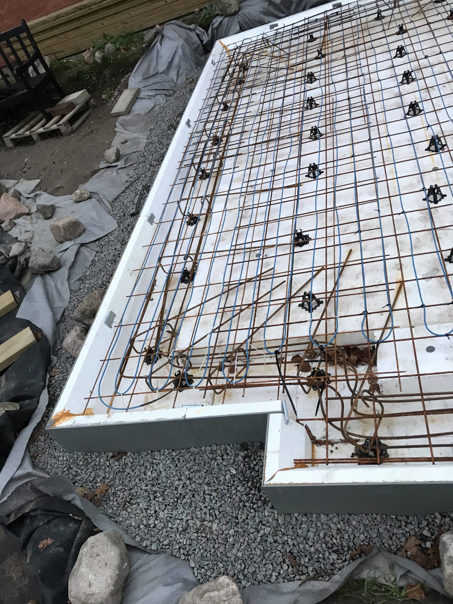 Ja, så jag tänker att det jag borde ha gjort om jag hade tänkt mig för var väl att innan gjutning kapa ner cellplasten som står lodrätt minst 10cm för att få till en bärighet och något att skruva fast skjutglaspartiet i. Kan ju fixa det i efterhand men tråkigt jäkla jobb och speciellt om jag måste armera in på plattan en bit för hållfasthetens skull. Dock blir det ingen kraft utåt, bara neråt så jag kanske inte behöver armera in på plattan en bit? Kom gärna med idéer och synpunkter på hur jag bör göra och om det jag tänker.B larry78 skrev: