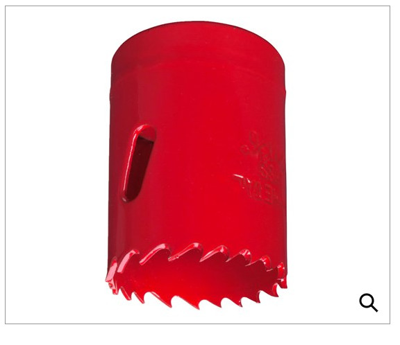 En hålsåg av den typ som visas, dvs HSS med många små tänder är tvärfel för att borra i trä med. Utrymmet mellan tänderna kommer fort att fyllas upp och behöva rensas. Använd antingen en hålsåg med hårdmetalltänder (som är till för bland annat trä) eller ett forstner/cylinderborr (ännu bättre) som visas i inlägg 3.
