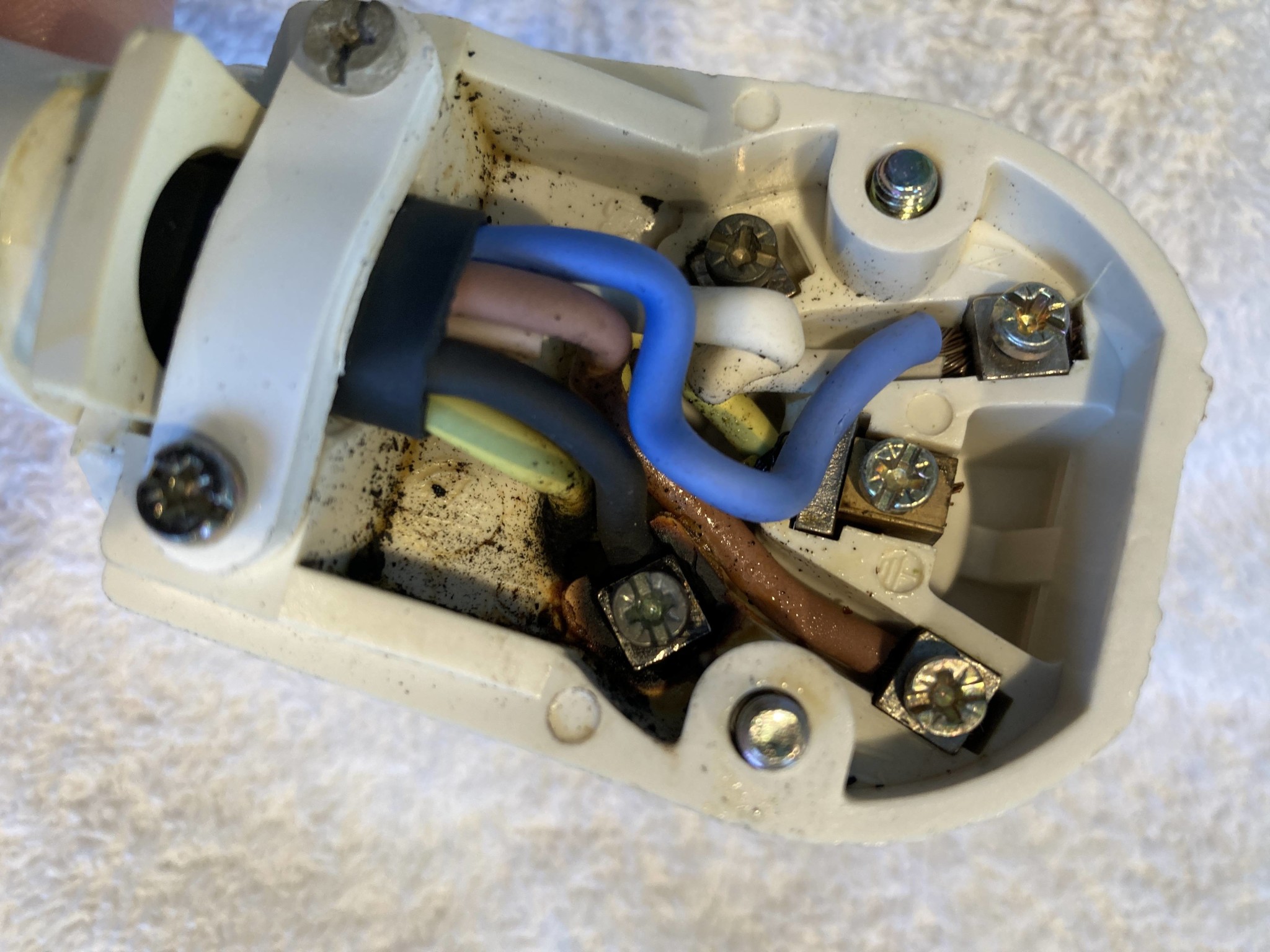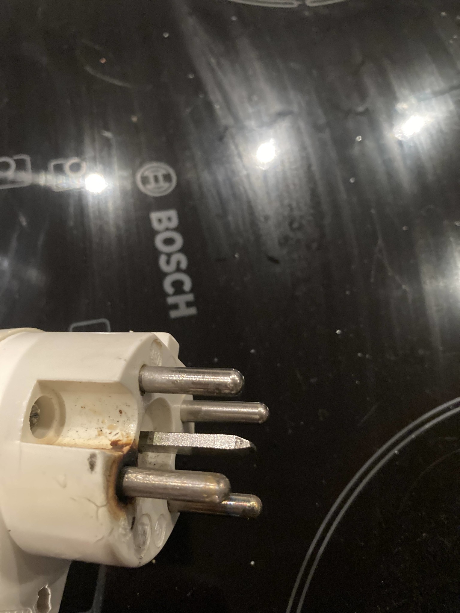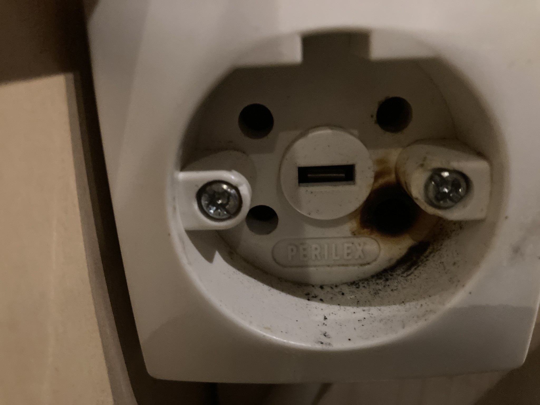 dock när jag tog ur kontakten ifrån uttaget. Så ser jag att det har gått varmt.