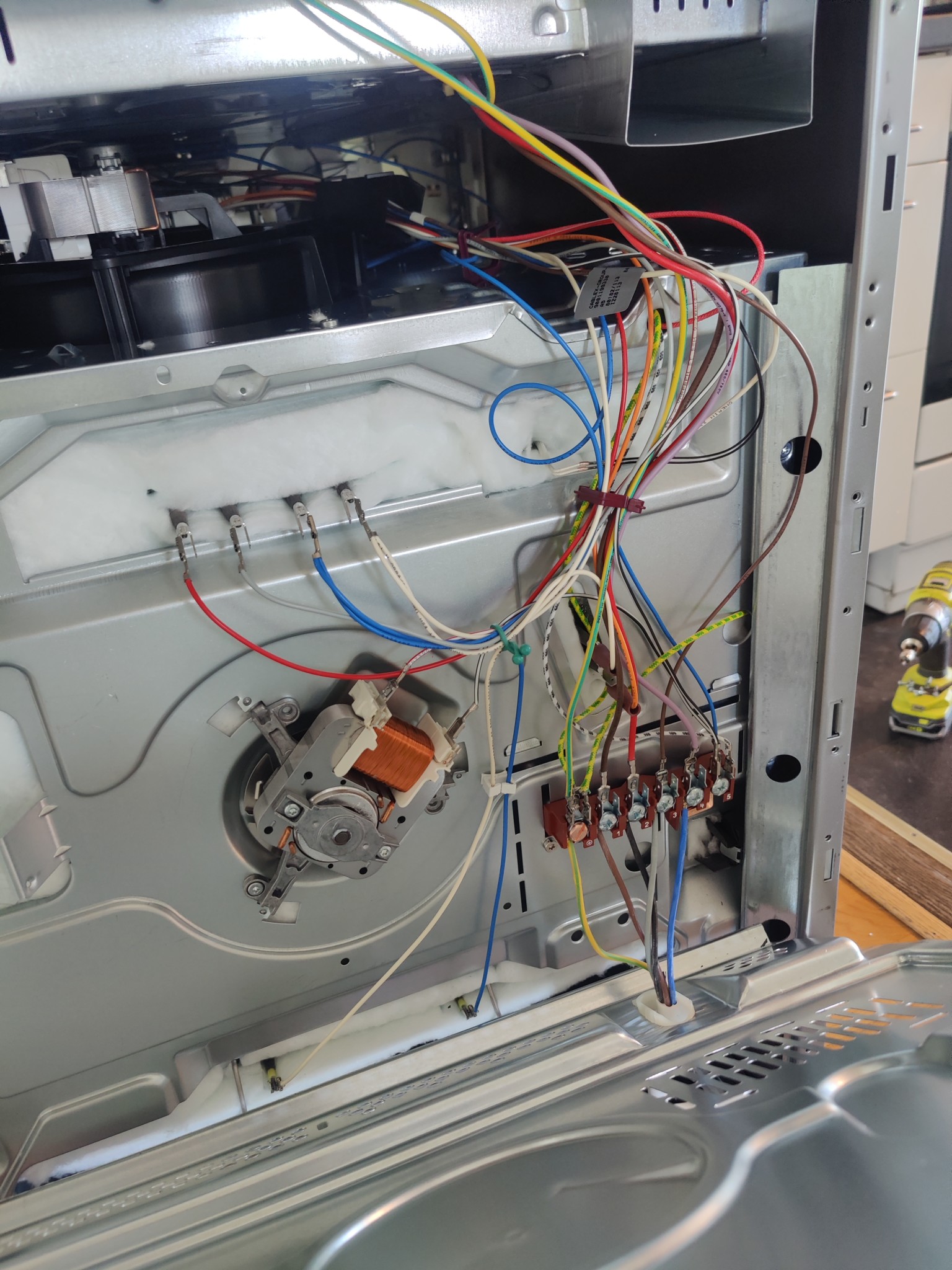 Det som är märkligt är att ugnen 230V anslutning syns inte på bilderna! Troligen så ansluter man den internt på det extra flatstiftet på ett av elektronikkorten,