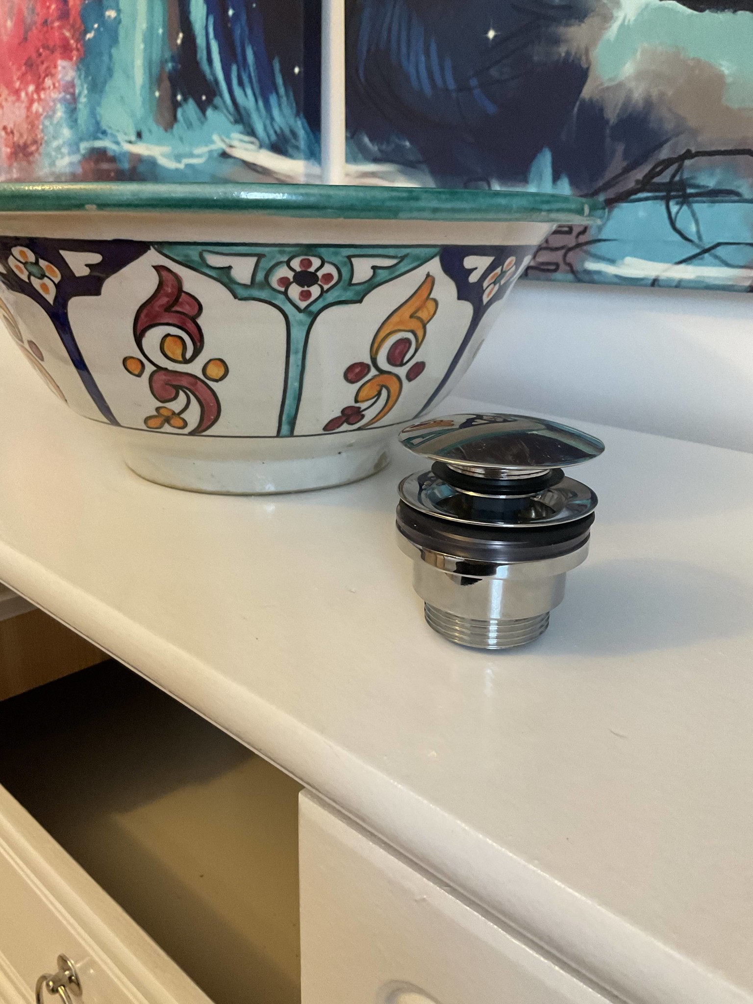 Jag har köpt en bottenventil till min badrumsmöbel. Handfatet ör ovanpåliggande och bänkskivan är av trä. Bottenventilen heter Tapwell 74400 Vedum.