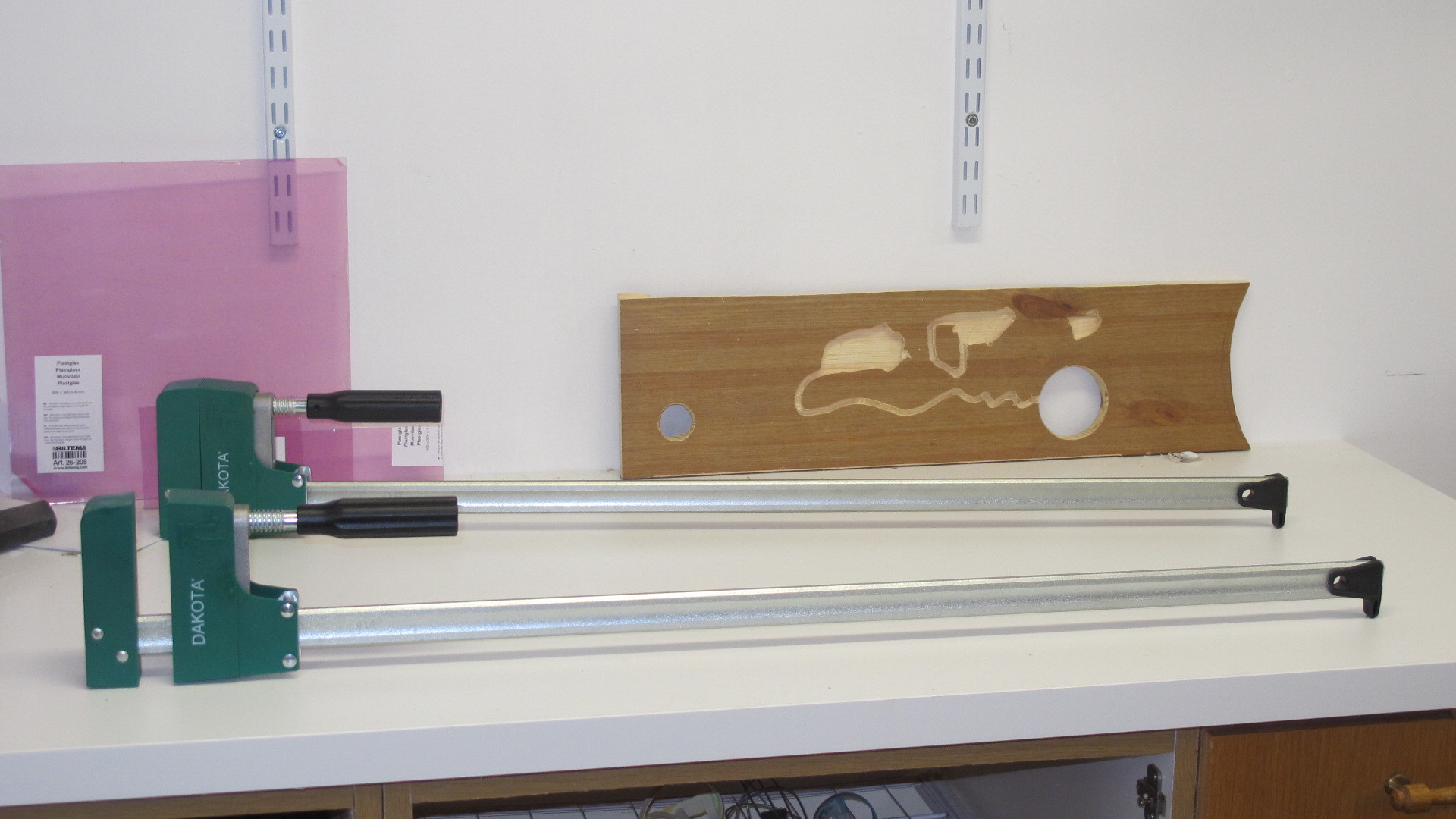 Glöm inte att plocka på er ett eller två skarvstycken när ni ändå shoppar. De är bra när man har ett "olösligt" problem och vill tvinga ihop saker som är större än den längsta tvingen man har. Det händer ju inte så ofta att man behöver ha svinlånga tvingar permanent.