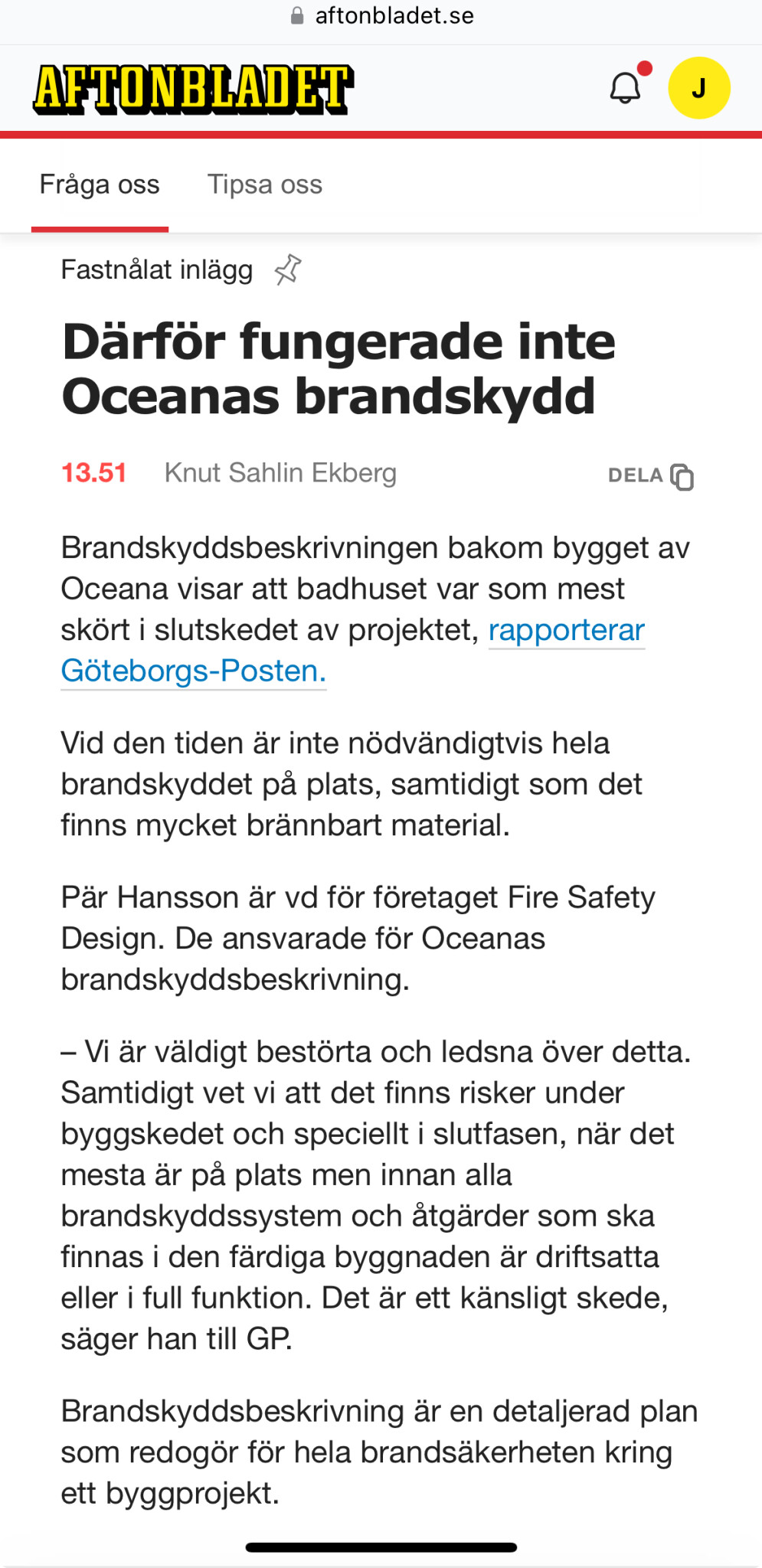 Man måste ofta hålla arkitekterna i öronen med sina kreativa skapelser.De behärskar inte alla discipliner av tekniken så var det förr i varje fall .Nån verkar ha missat brandcellsindelningen i kombination med materialval. Tur att det inte hände en sådan olycka med fullt av besökare.pacman42 skrev: