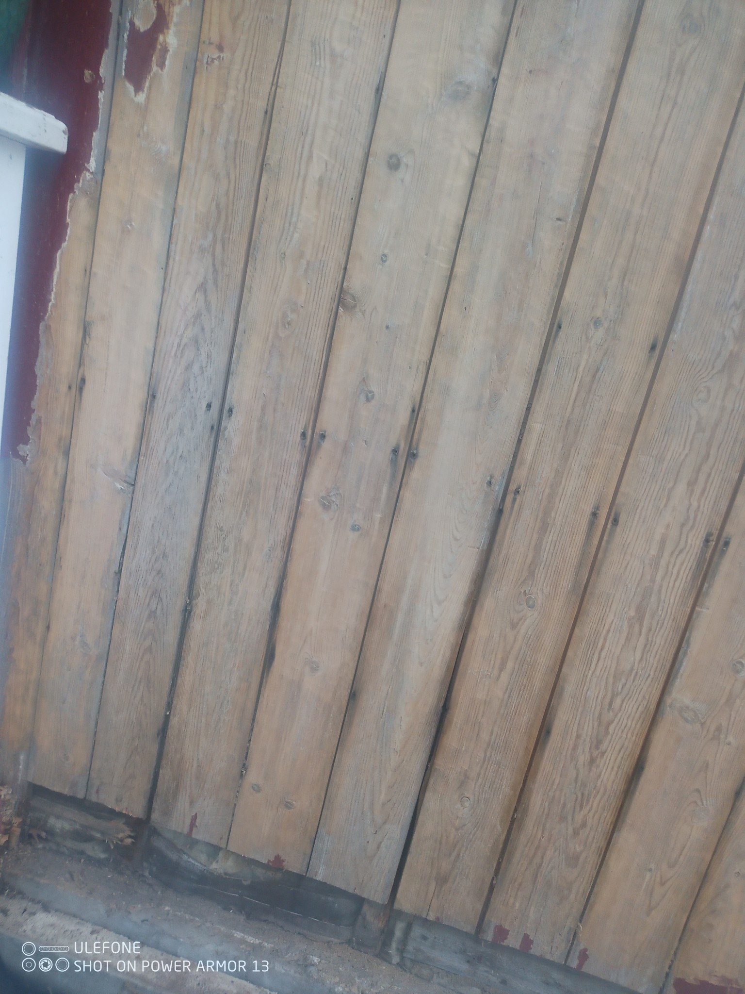 Gammalt virke ska ju va bra o hållbart, hur gammal panelen egentligen är vet jag inte men känns gammalt hårt och fräscht (förutom ändstumpen som ska bytas till offerbräda då den ligger innanför kanten på grundmuren och klapp emot) hade hoppats på att hitta sågspånsisolering när ja rev knutbrädan för o kika bakom men är nå slags gullfiber med nå halvhjärtad luftspalt...(se bilder).