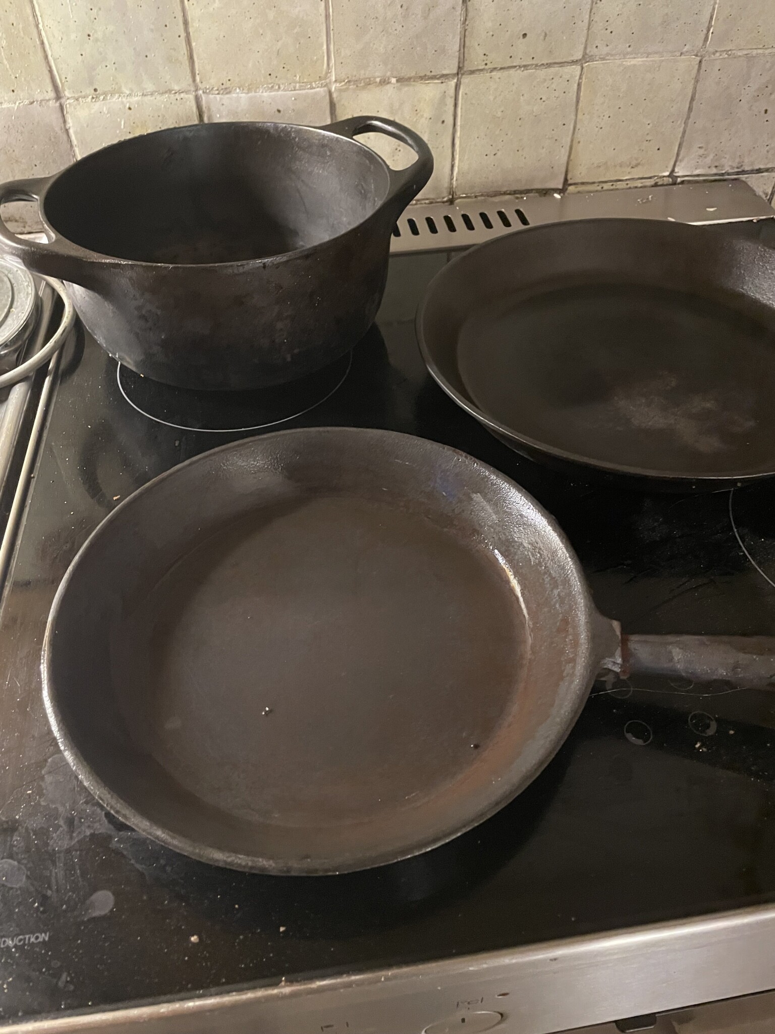 Jag har använt samma metod i utebrasor. Funkar finfint och har man ett tjockt lager rost försvinner det också. Annars kör jag alltid köksutrustning av gjutjärn i ett lutbad ett par dagar. Det funkar det också om man inte har vedpanna eller brasa tillgänglig.