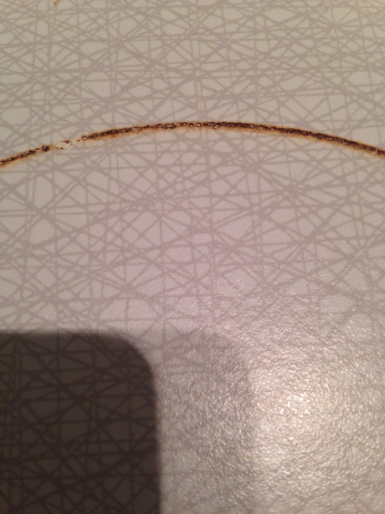 En alldeles för varm kastrull ställdes på min virrvarrlaminatskiva och brände 2 märken, se bilder.