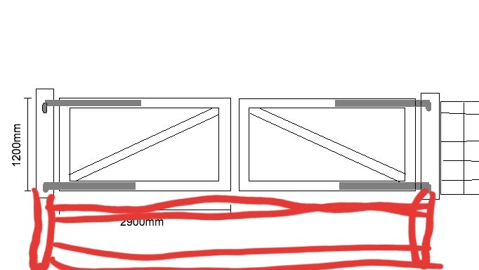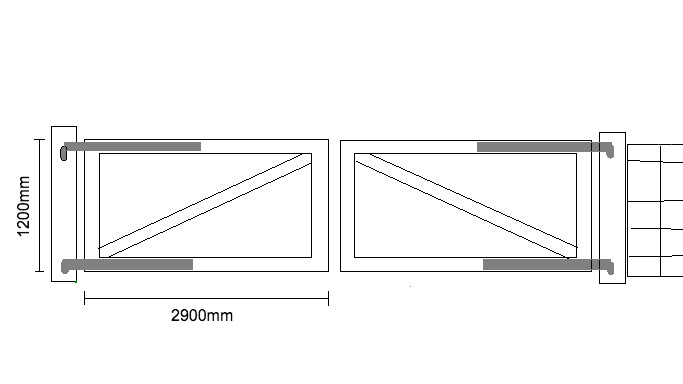 Ska bygga en trägrind 1200mm hög, den kommer att bli i två delar som vardera svänger inåt på hakgångjärn fästa i en 95x95 stolpe.