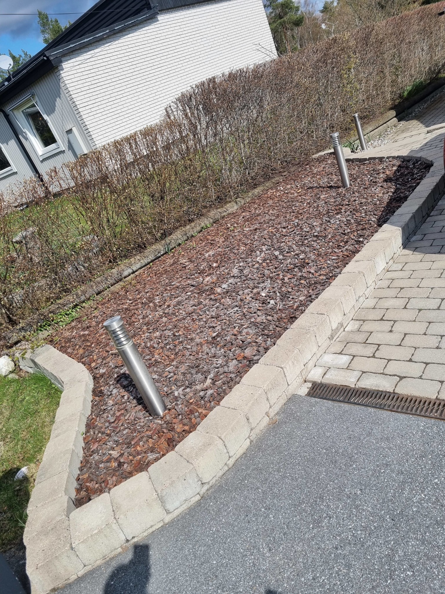 Behöver bredda uppfarten för att få plats med.en bil till, och lägga marksten lika som tidigare.