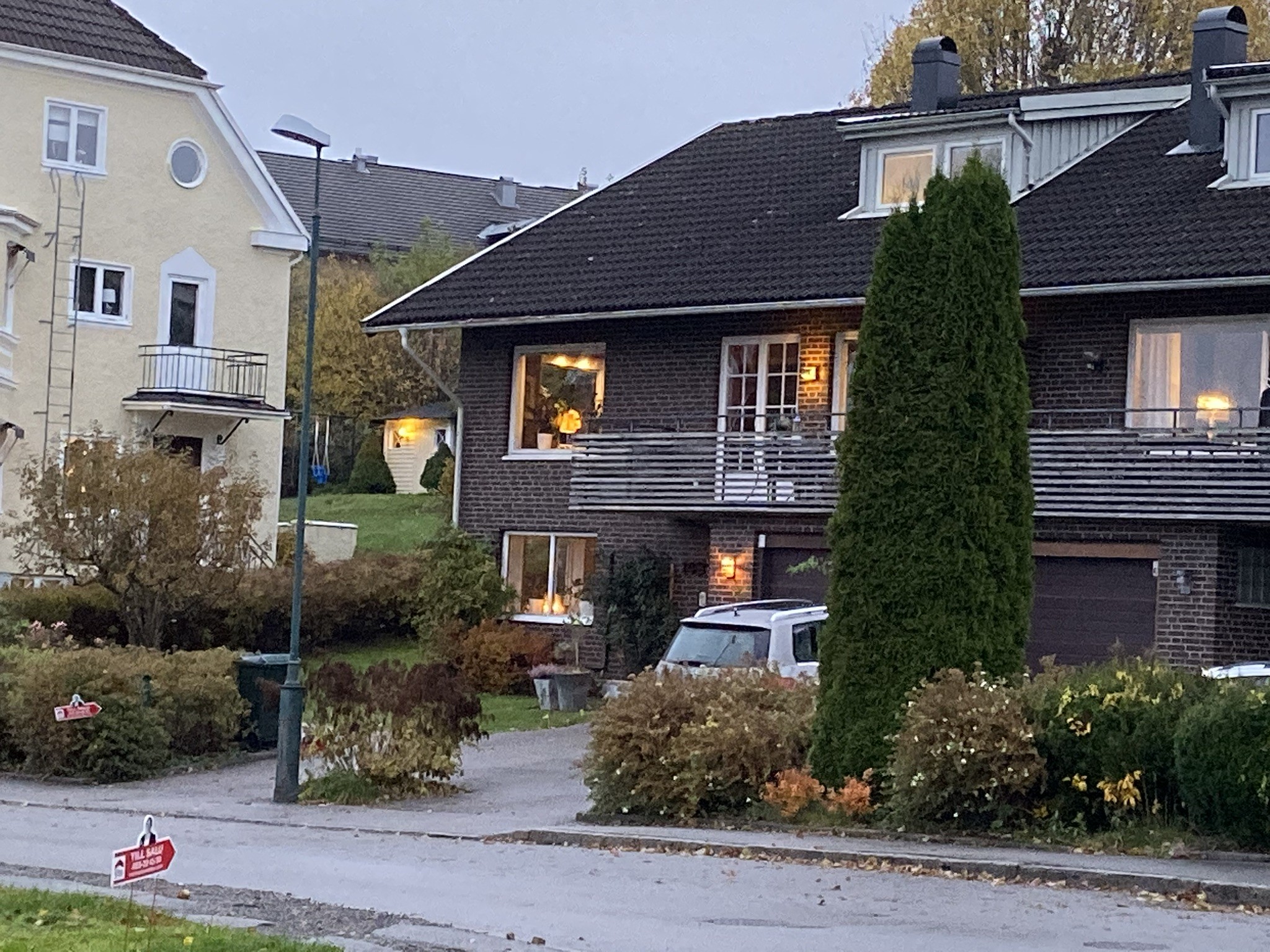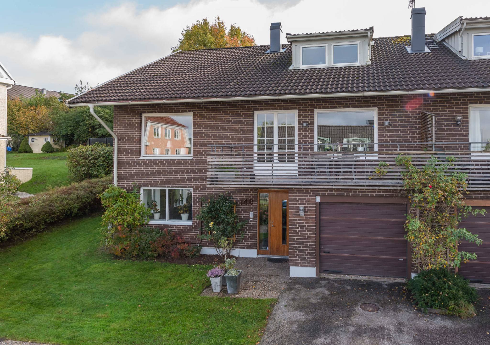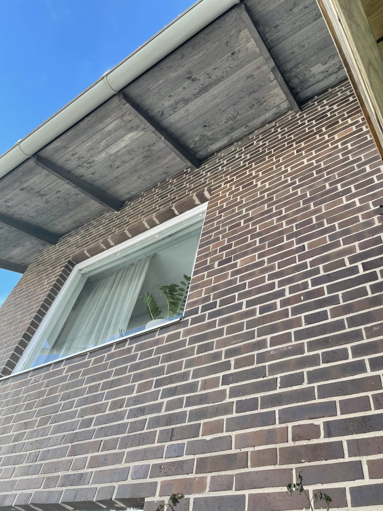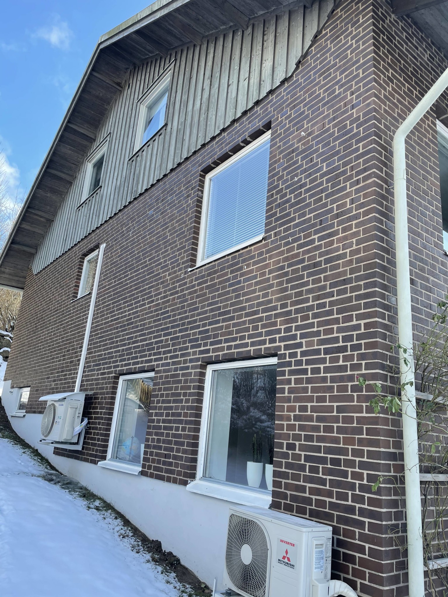 Vi bor i ett parhus som med fasad brun tegel. Vi ska byta tak till svarta pannor. Frågan är vilken färg passar träfasaden. Nedre delen är typ putsfasad. Ska man matcha träfasaden med det putsade?