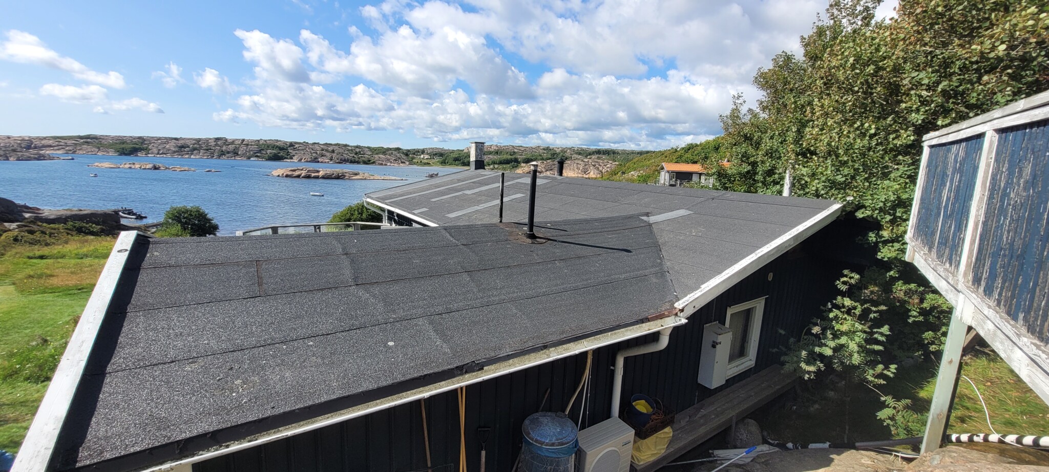 Allt inklusive plåthuvar för ventillation och skorsten.