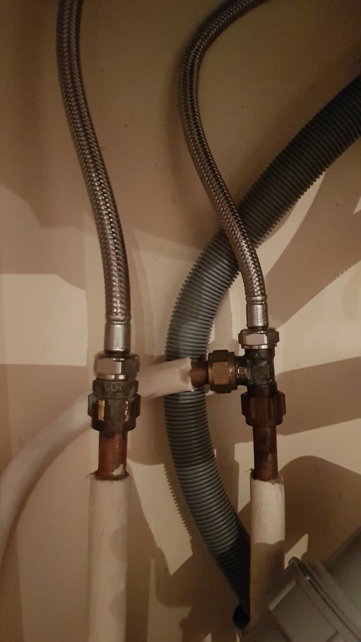 Men eftersom framför allt T-röret ser ut som ett hopplock av lite av varje så skulle jag överväga att snygga upp alltihop med nytt T-rör och ny skarv på varmvattnet. Förutsatt att slangarna räcker då. T-röret kommer ju komma lite längre ner om du kapar om de befintliga rören. Välj ett T-rör från Vatette så passar planadaptern ovan. Prisolrören måste du ha stödhylsor i om du byter hela kopplingarna: