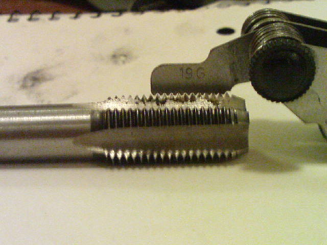 Gedore stigningsmätare (helt korrekt) anger till 19 TPI (thre-