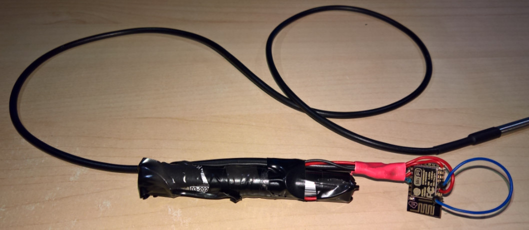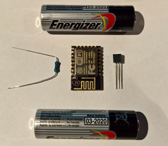 Detta är allt som behövs för temperatursensorn, måtten på ESP8266 är 24mm X 16mm vilket gör den enkel att dölja