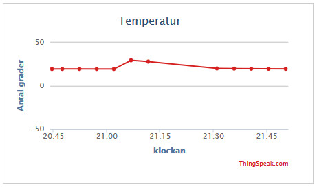 När sensorn vaknar uppdateras informationen i realtid på Thingspeak grafen