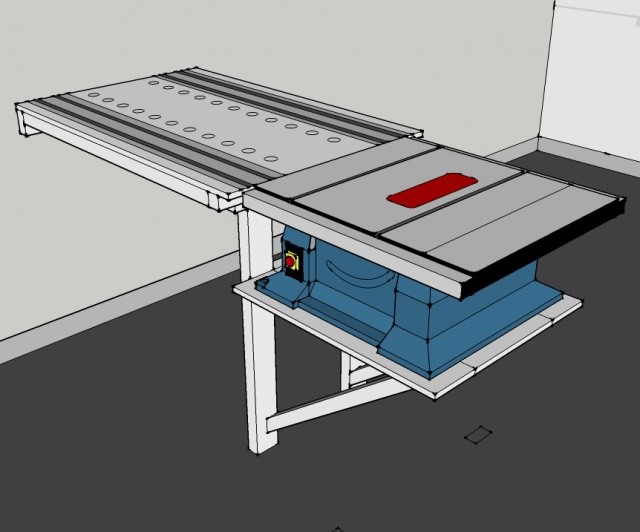 Jag la lite tid på att återskapa en en Bosch GTS10 bordssåg med rätt yttermått, så man kan se proportionerna på helheten. Har även skickat upp den modellen till Google ifall nån annan kan ha nytta av den.