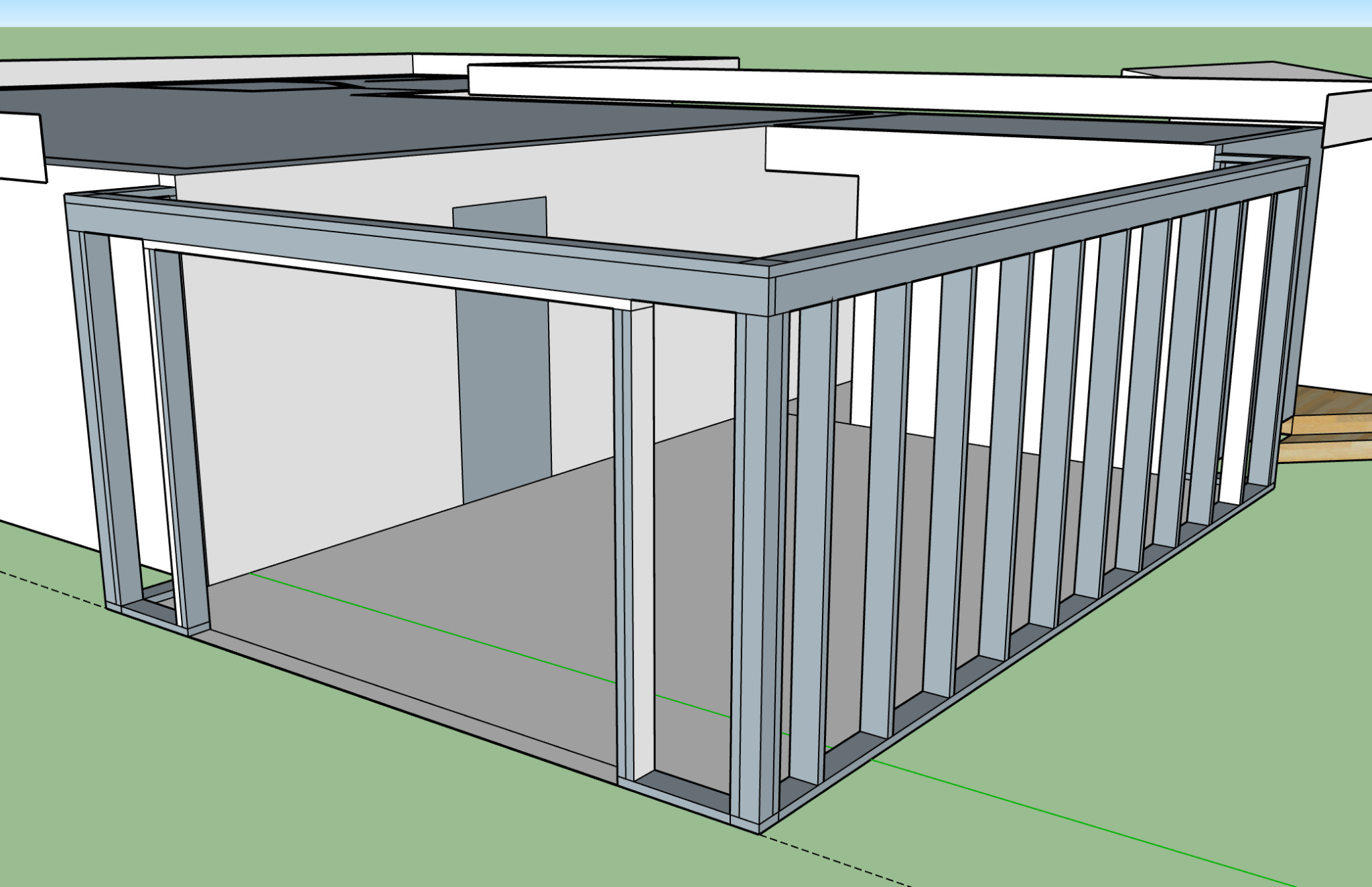 En annan sak som oroar mig lite är vid garageporten som kommer blir 3m bred. Kommer det räcka med en vanligt reglad vägg tillsammans med stående avväxling vid hammarbandet? Eller bör jag ställa två stolpar och en limträbalk här? I och med att det är ett valmat tak så går ju takstolarna i båda riktningarna.