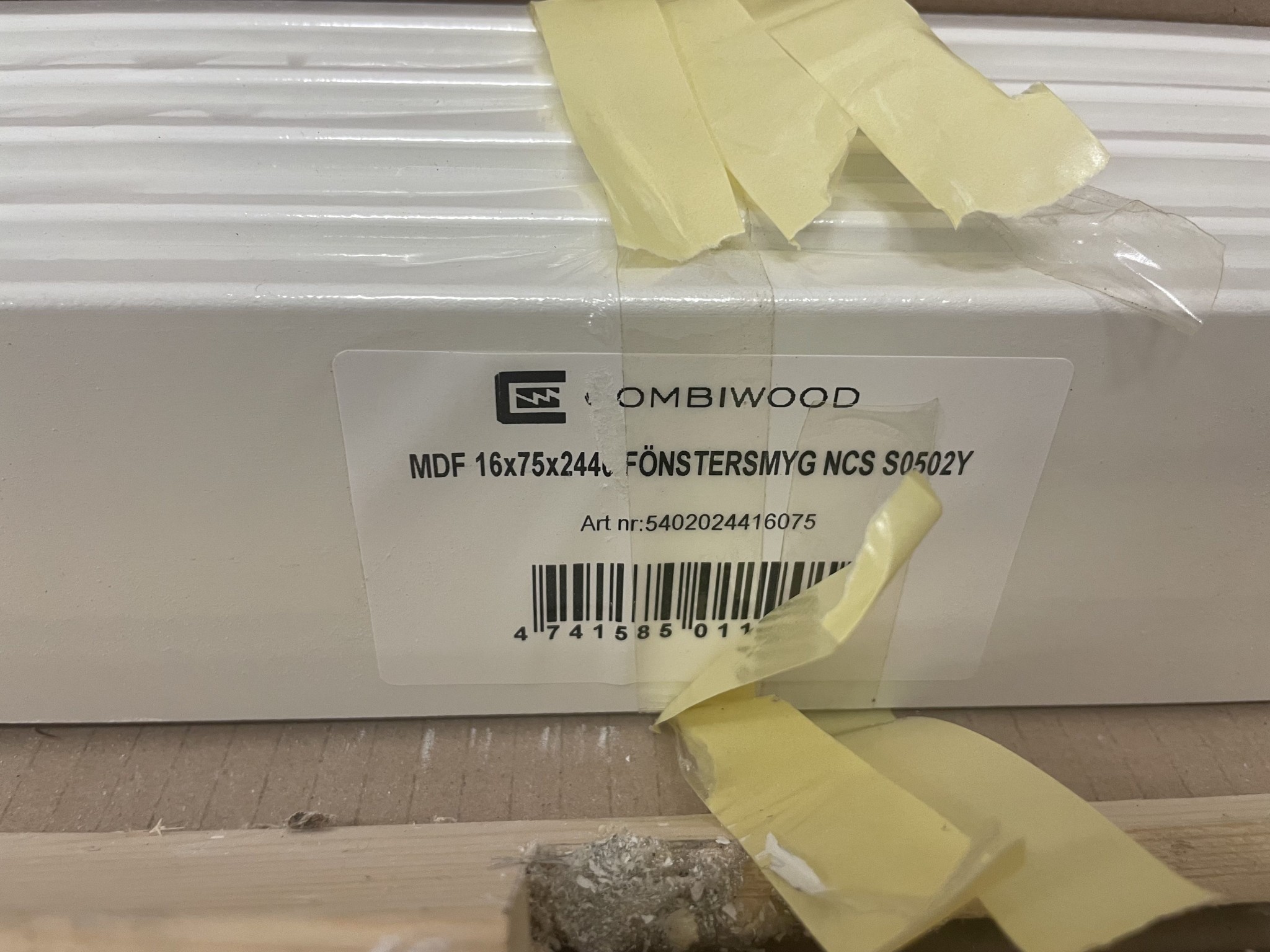 Har sedan tidigare köpt denna MDF-list för fönstersmyg som är 75 mm bred.
