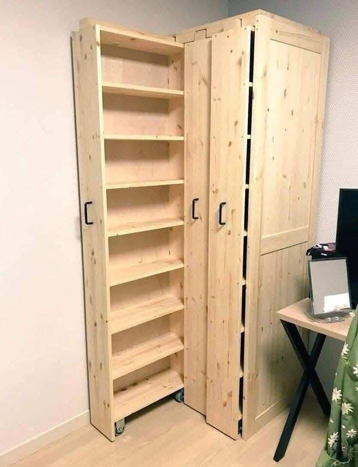 Har tänkt bygga förvaring till garaget. Ska vara hyllor på hjul som man kan dra ut. Se bild för inspiration.