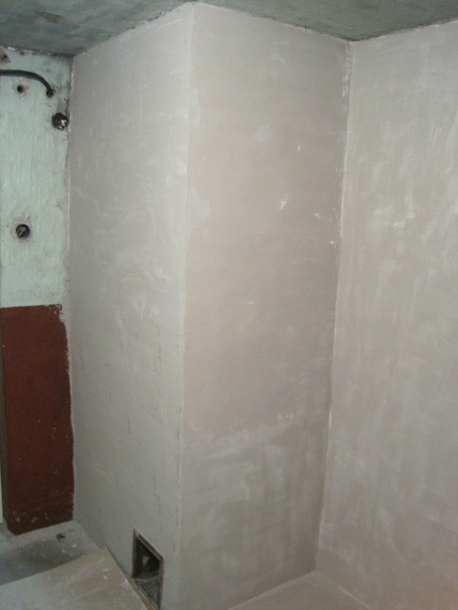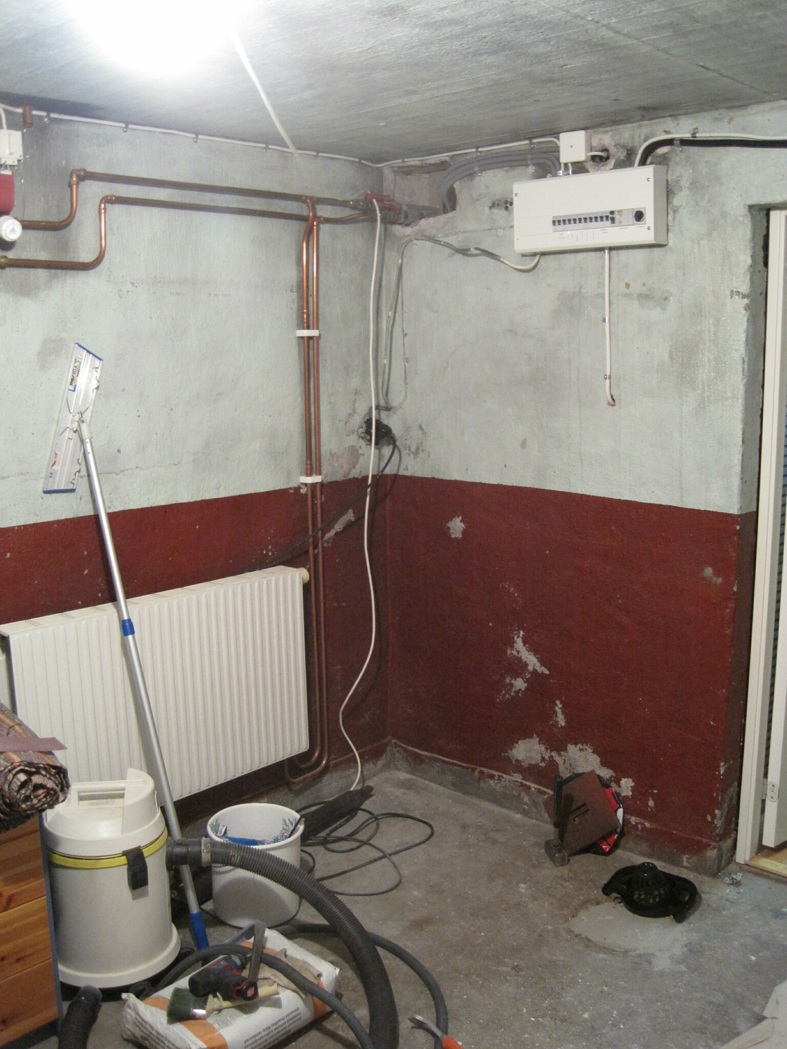 Gamla pannrummet plastade jag in all el och tvättade med högtryckstvätt med medel. Sedan lite spackling, flytspackel på golv.
