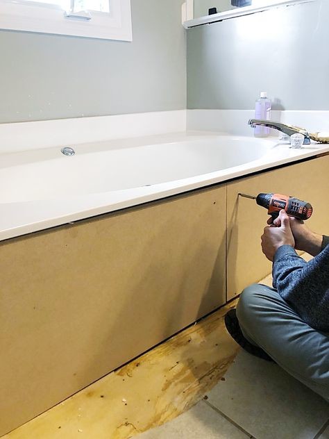 Jag har sett någon skriva på internet att de klädde in sitt badkar enkelt på egen hand genom att sätta ihop två (eftersom det står i ett hörn) sidor av träskivor och skjuta in framför badkaret. På så sätt går det lätt att dra ut sidorna när man vill städa under.