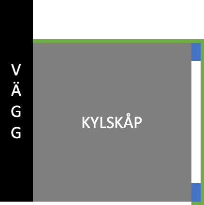 Vi håller på att renovera köket. Kylen vi tänker är ett integrerat kyl-/frysskåp som kommer ställas i ett metod-skåp för kyl/frys. Vänstra sidan på skåpet kommer vara diktan en riktig vägg, men baksidan och högra sidan kommer vara "fristående".